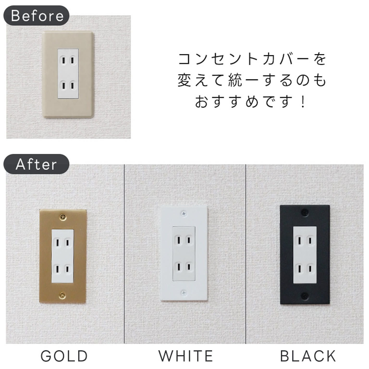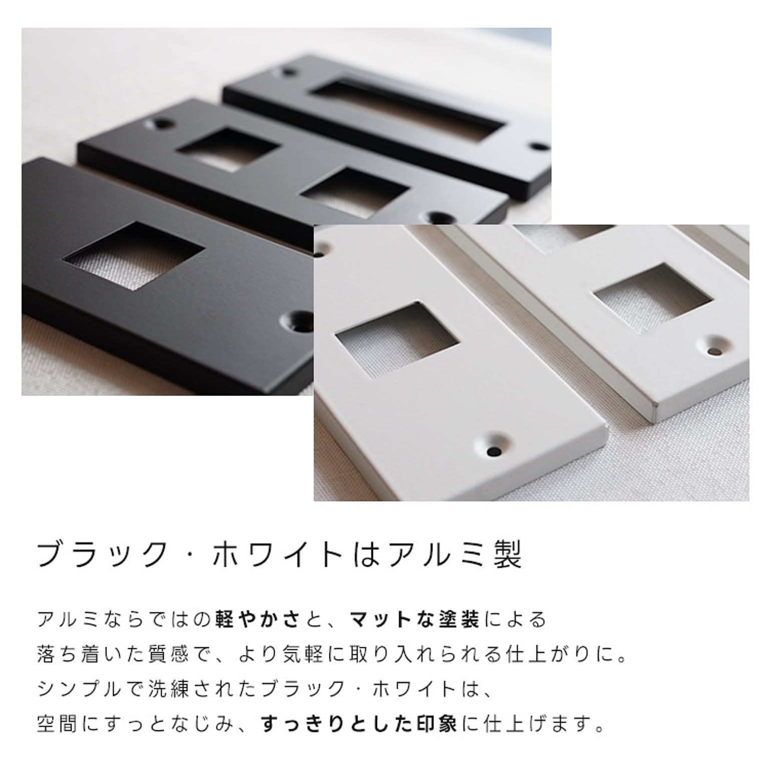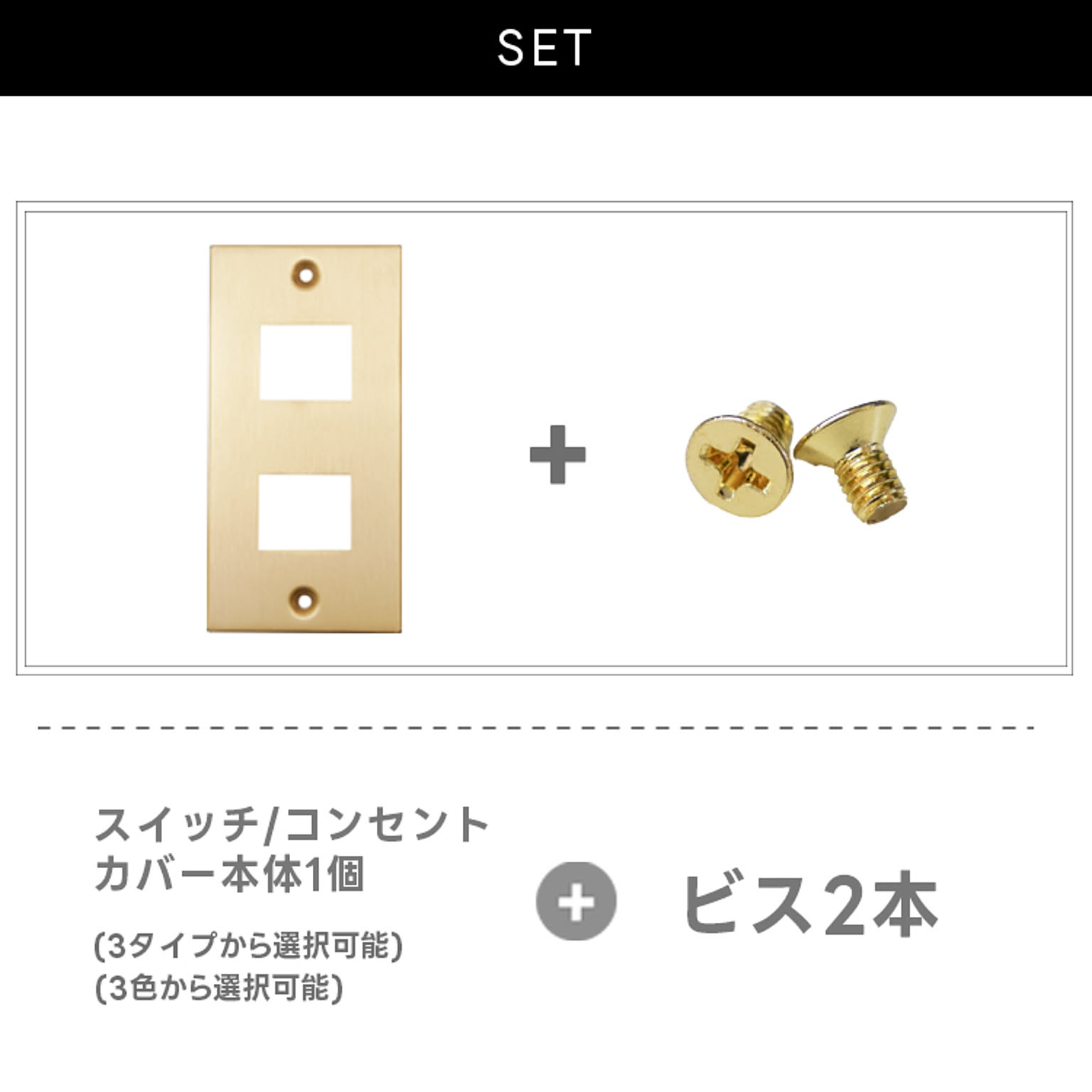 【仕様】 商品サイズ:カバー:約120×60mm×7mm 素材: ゴールド:真鍮製 ホワイト・ブラック:アルミ製 セット内容:スイッチプレート/コンセントプレート 1枚、ねじ 2本