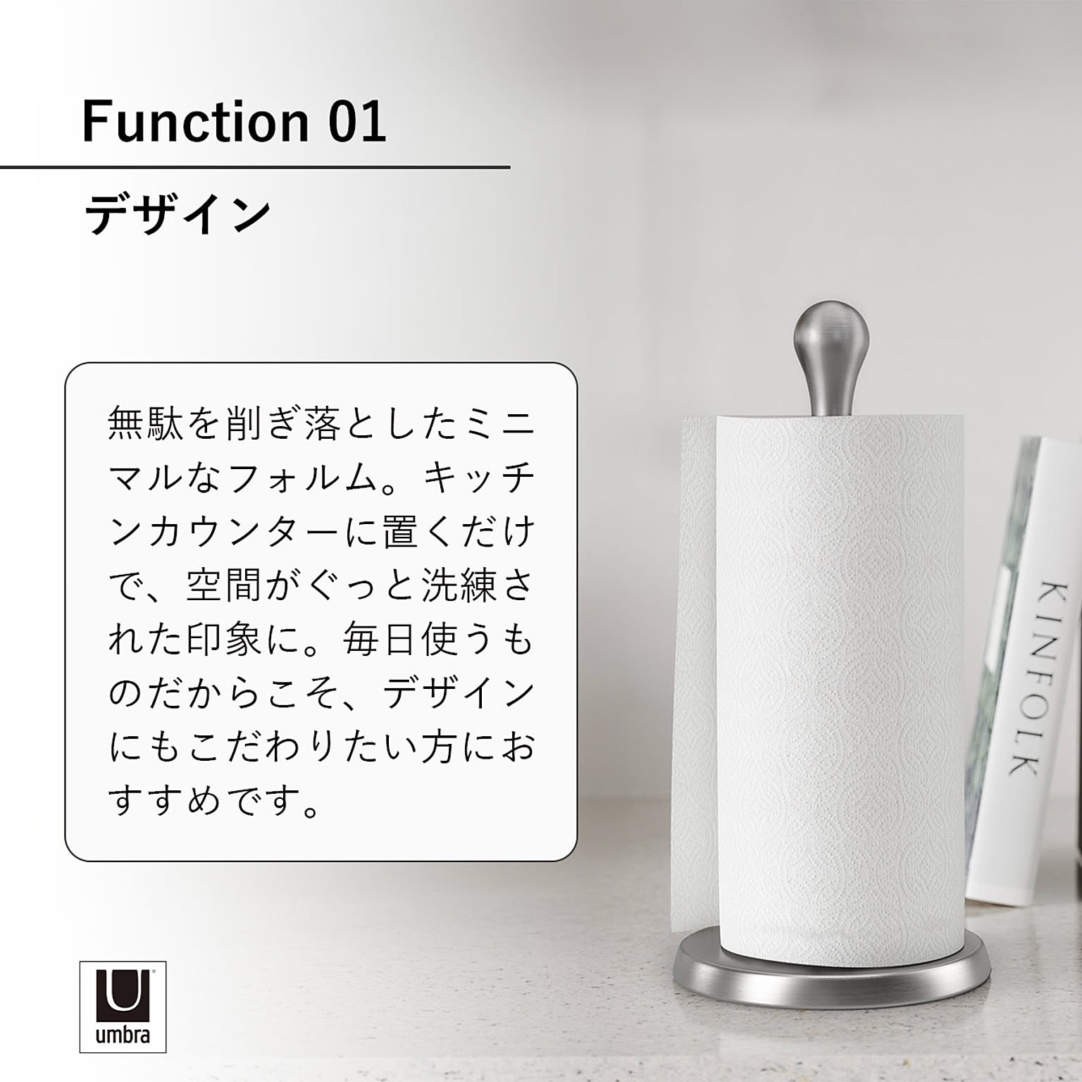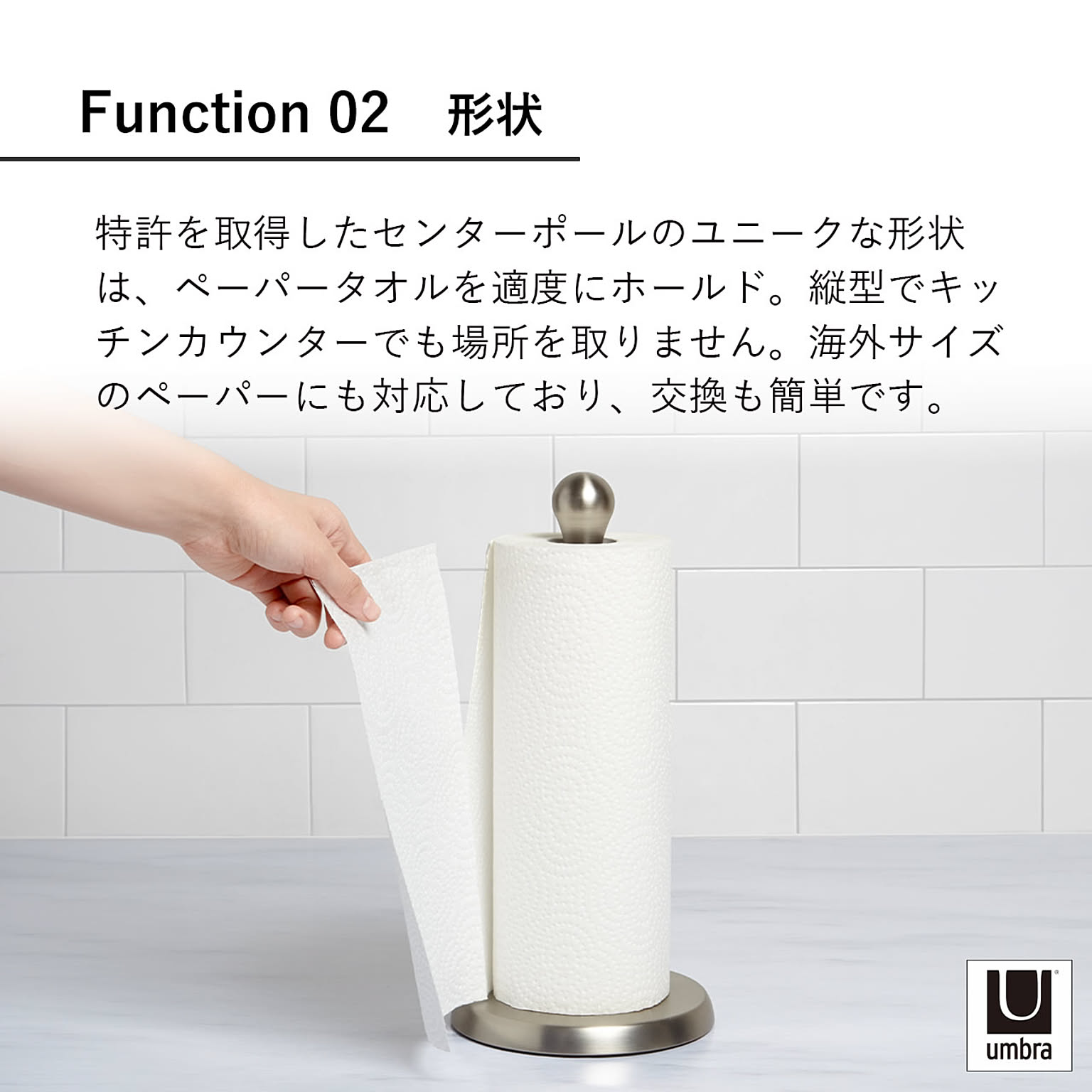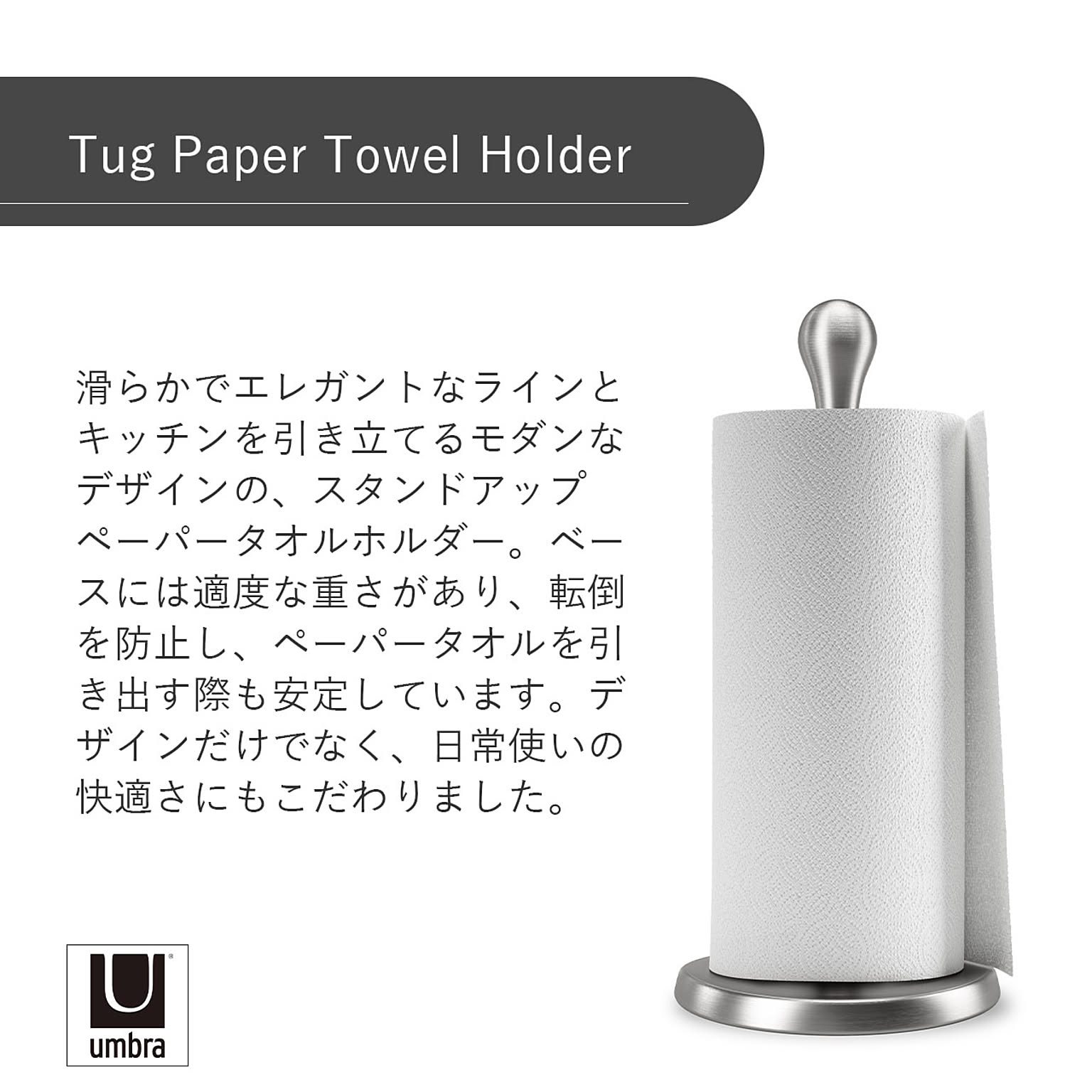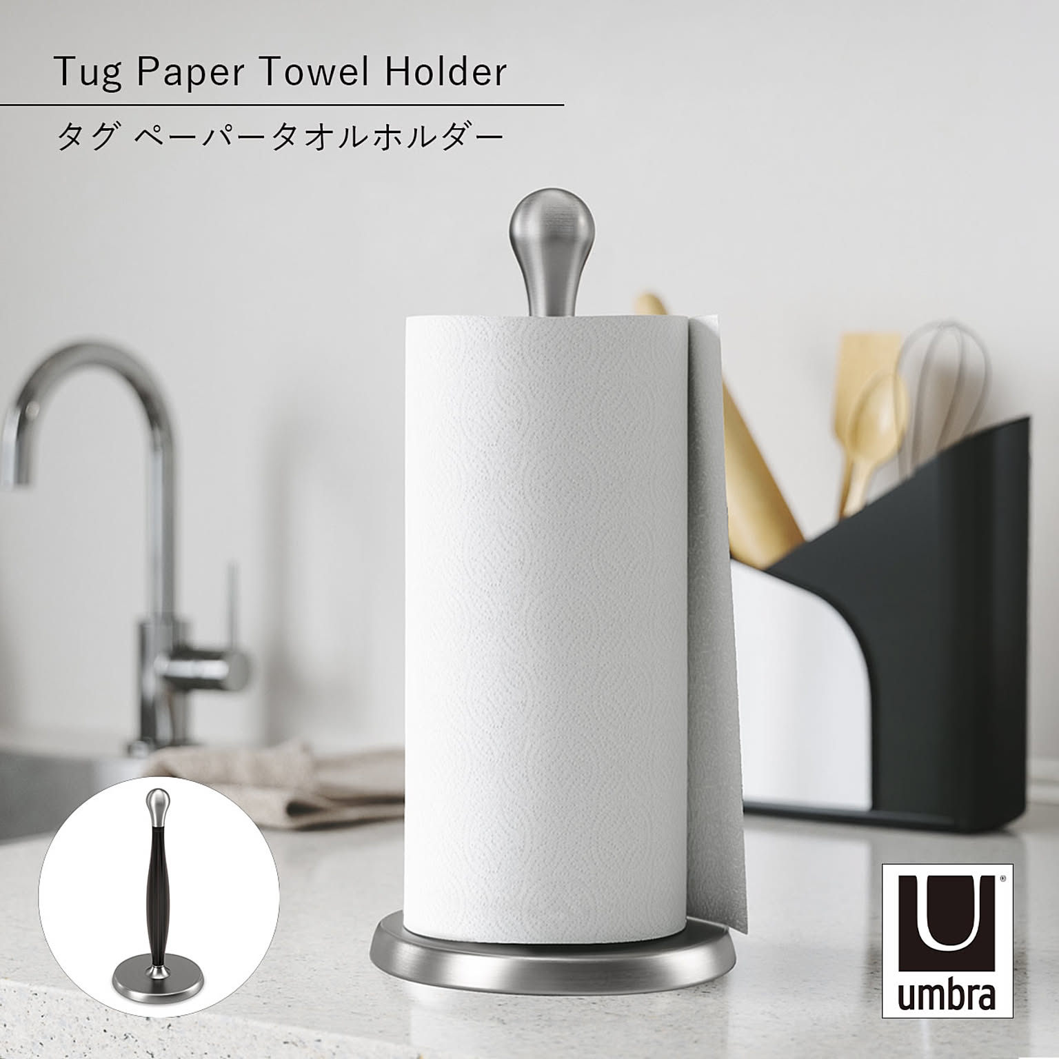 Umbra アンブラ タグ ペーパータオルホルダー Tug Paper Towel Holder キッチンペーパーホルダー ロールペーパー 縦型 ステンレス デザイン雑貨