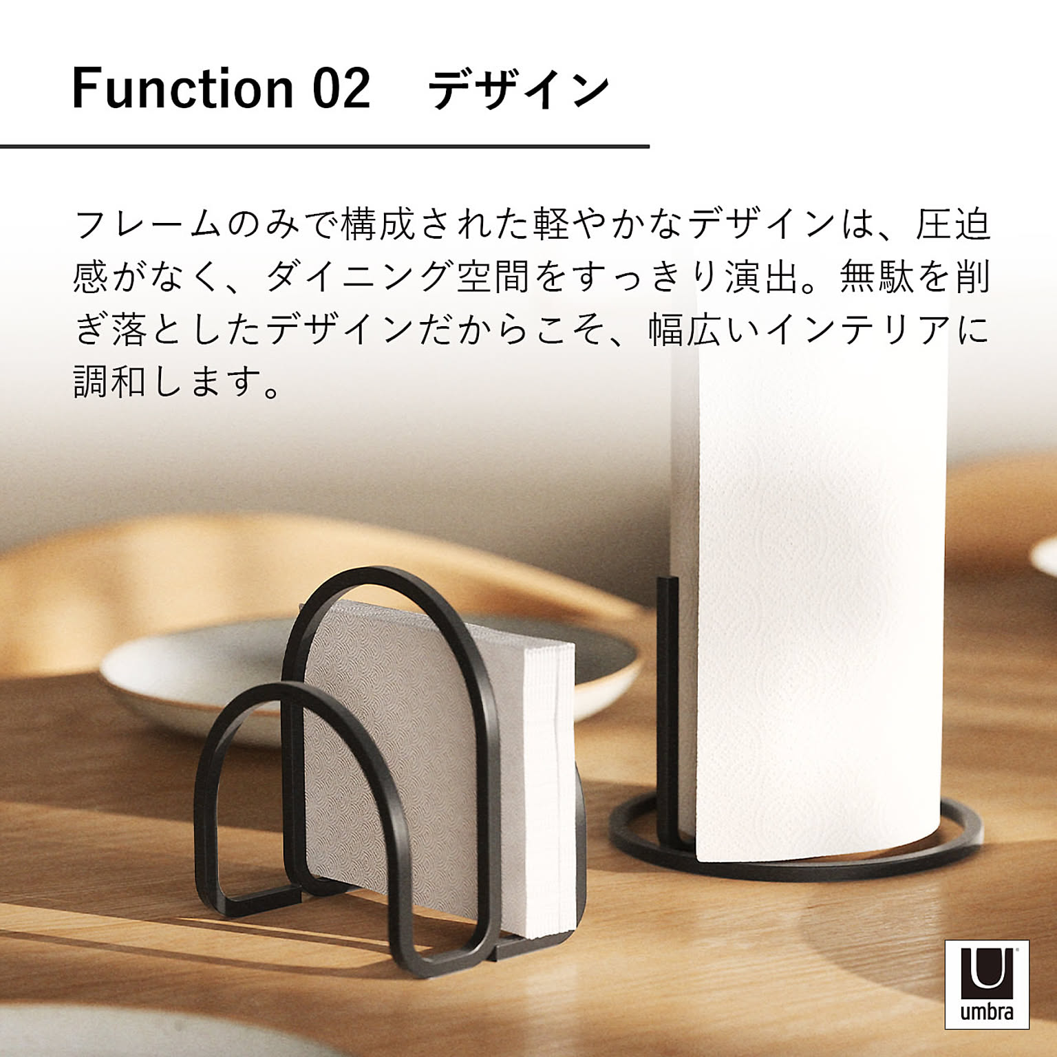 直線的なフレーム構造がスタイリッシュな印象を与え、ナプキンをすっきりと整理。実用性とデザイン性を両立した、長く使えるナプキンホルダーです。