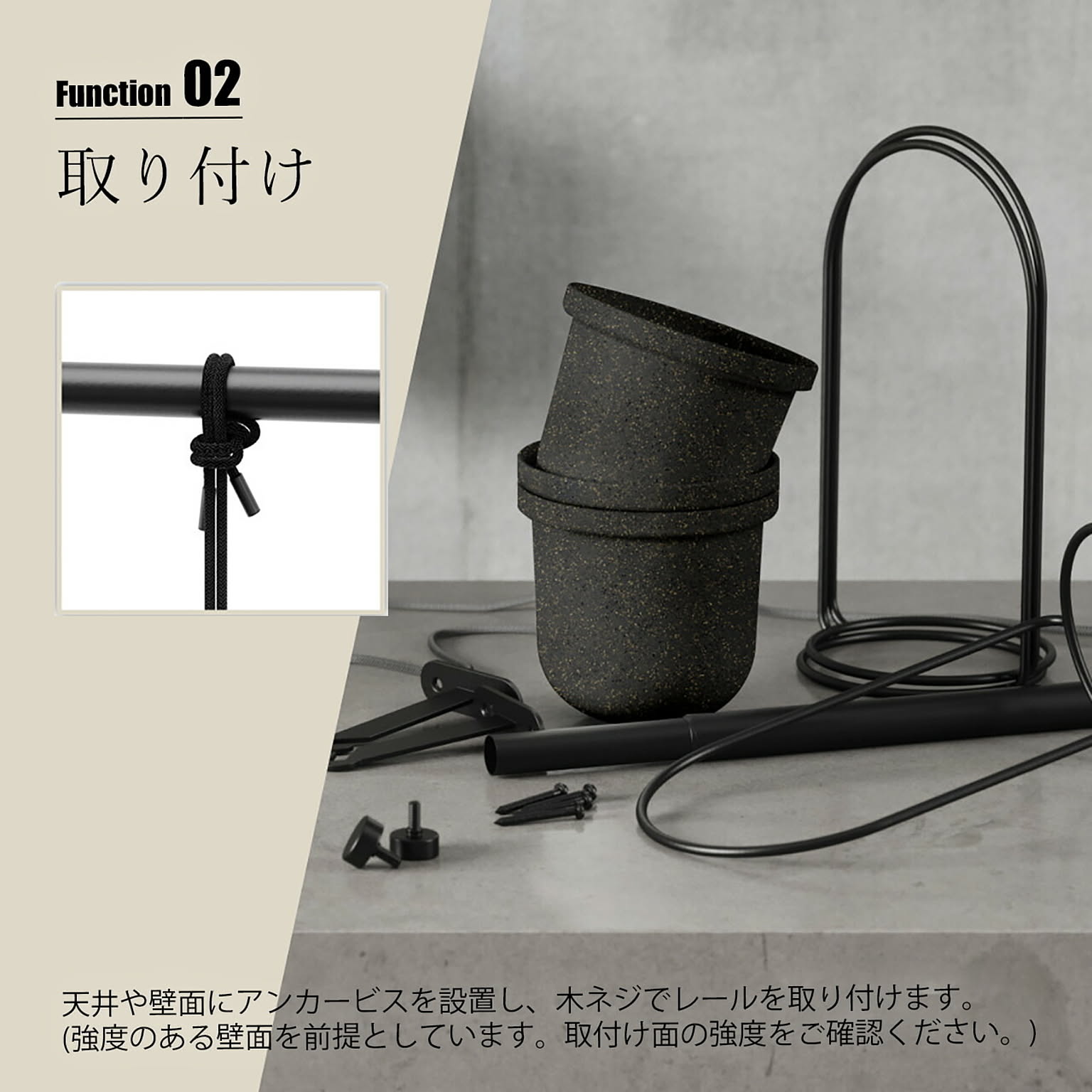 強度のある壁面を前提としています。取り付け面の強度をご確認ください。