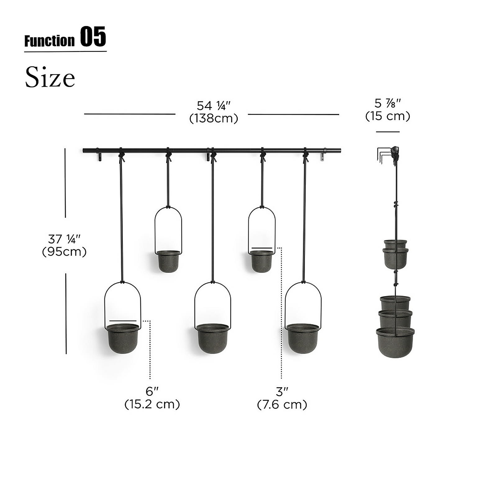 W138×D15×H95cm / 小ポット:φ7.6cm、大ポット:φ15.2cm