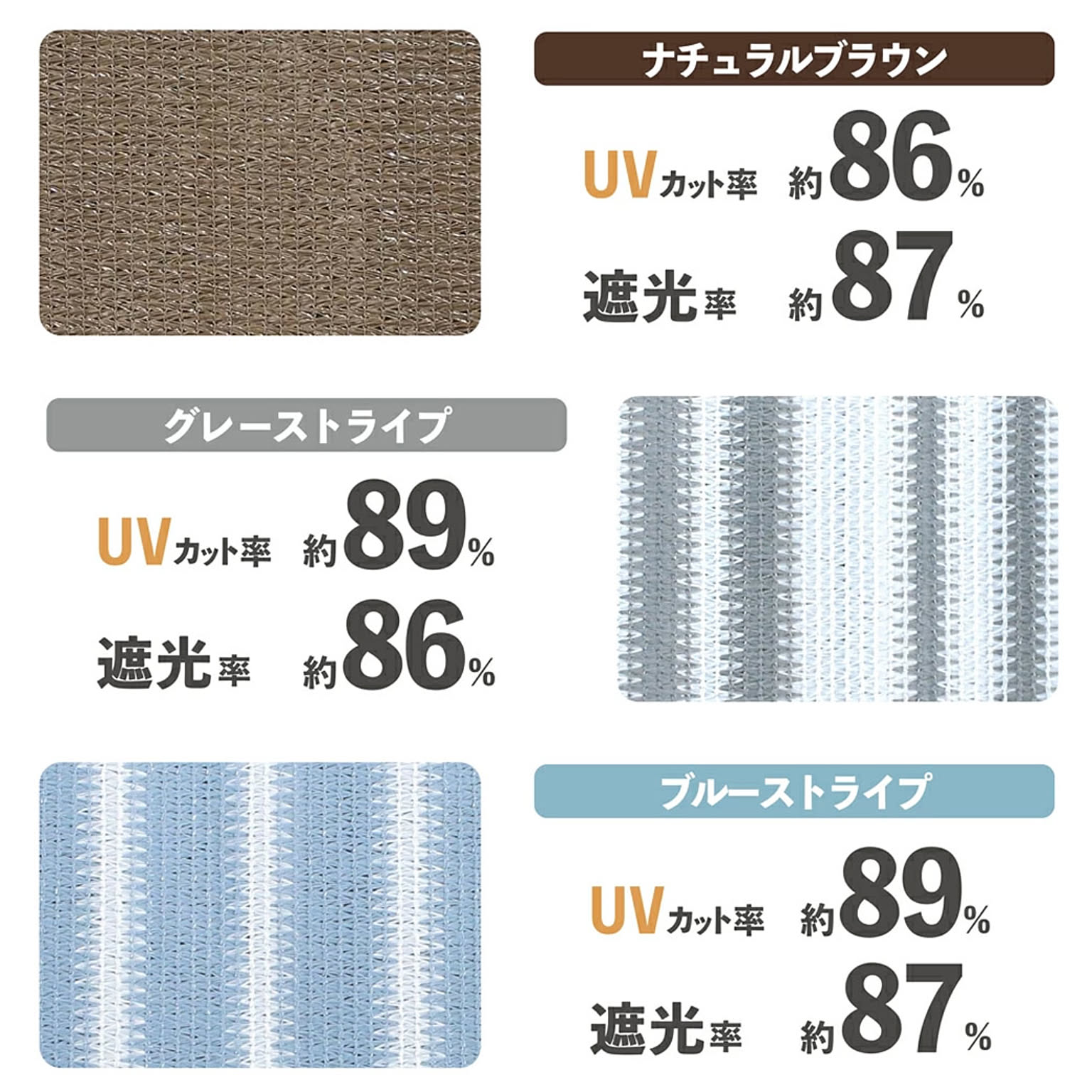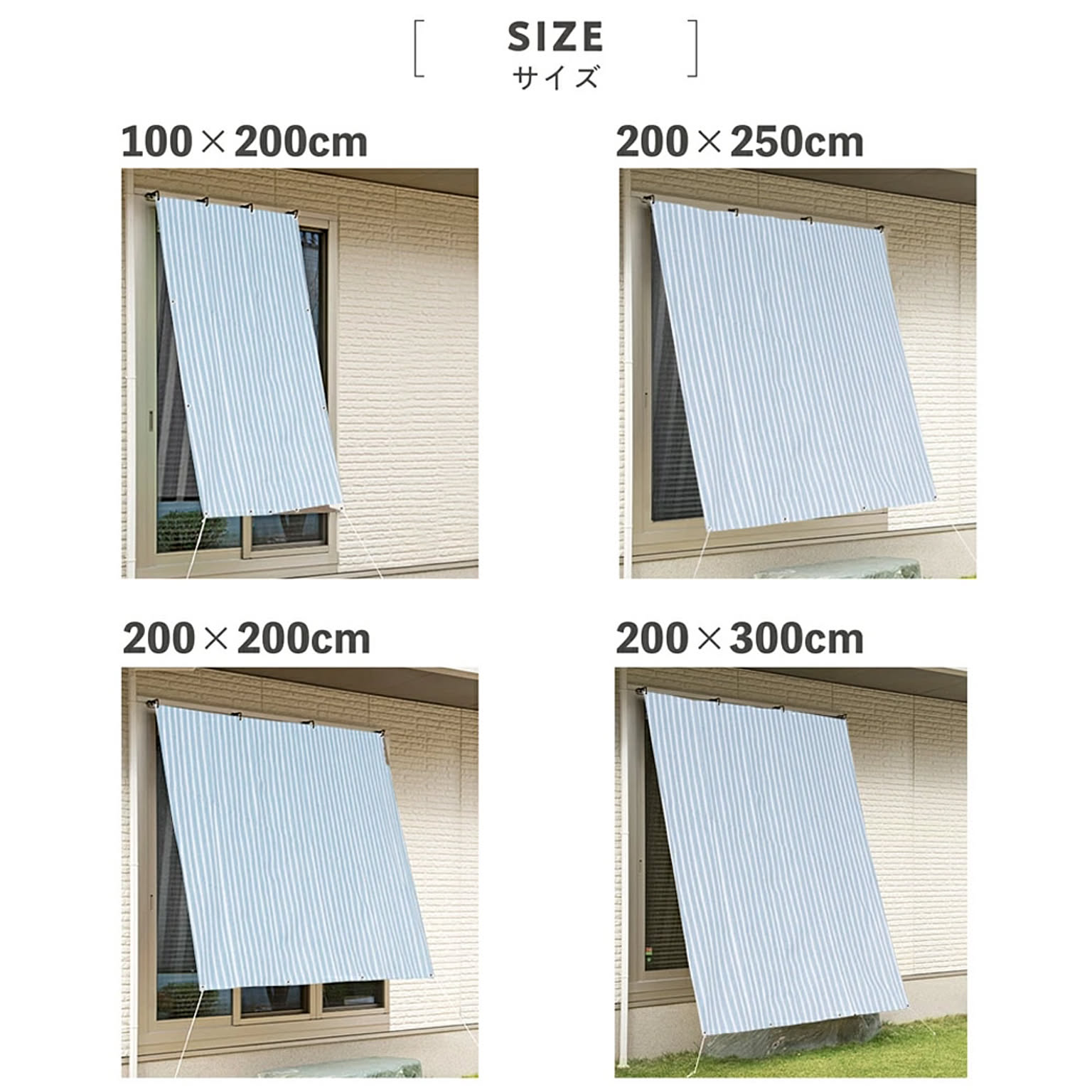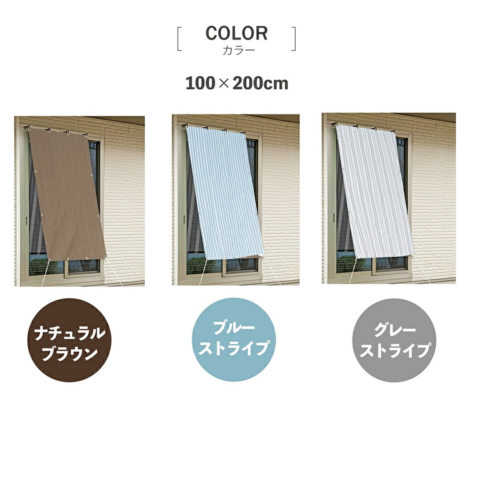 ■サイズ:約100×200cm ■枚数:1枚 ■素材:(生地)ポリエチレン、(ひも)ポリエステル、(ハトメ)アルミニウム ■付属品:(取付け紐)約1.5m×4本入 ※取付金具は別売りです ■UVカット、遮光率: ■(ナチュラルブラウン)UVカット率約86%、遮光率約87% ■(グレーストライプ)UVカット率約89%、遮光率約86% ■(ブルーストライプ)UVカット率約89%、遮光率約87% ■ハトメ:8カ所 ■made in china ■八千代工業 日除けオーニング 100×200cm ■ナチュラルブラウン / 4510289424955 / グレーストライプ / 4510289424962 / ブルーストライプ / 4510289424979 /