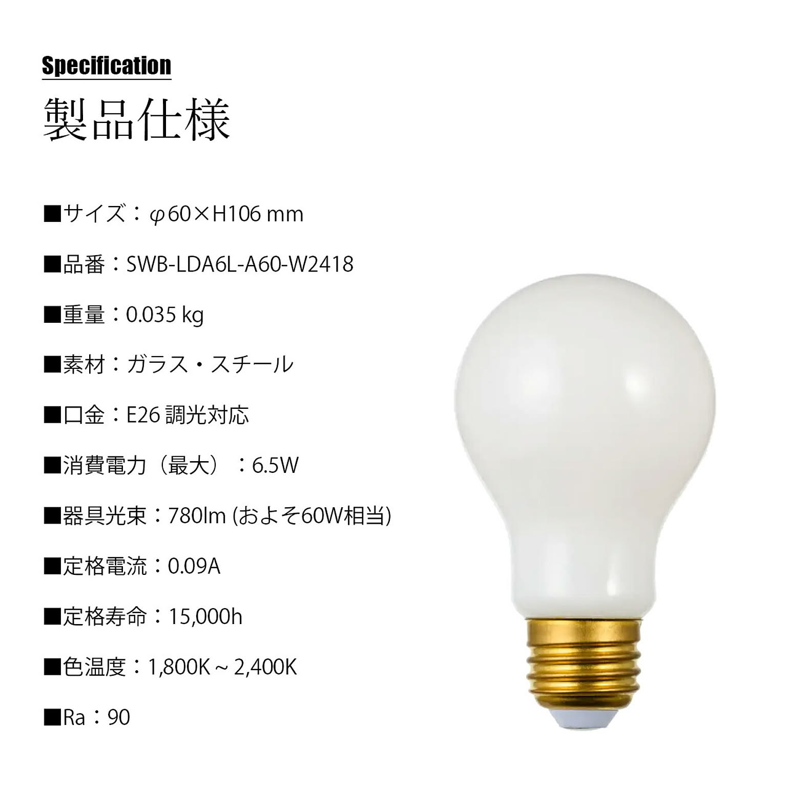 LED SWAN BULB 2400-1800 WHITE EDISWANSWB-LDA6L-A60-W2418 (調光対応) DIM TO WARM / 60W相当 1800〜2400K(変調)