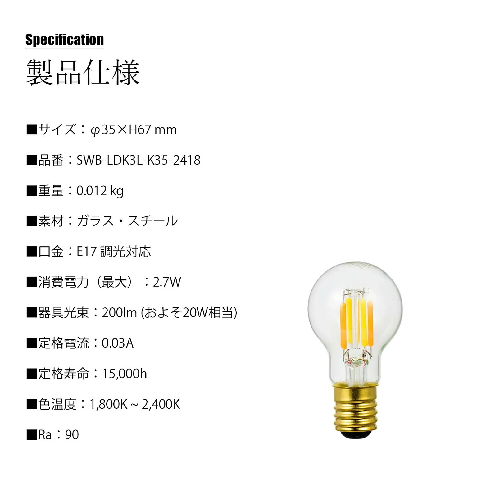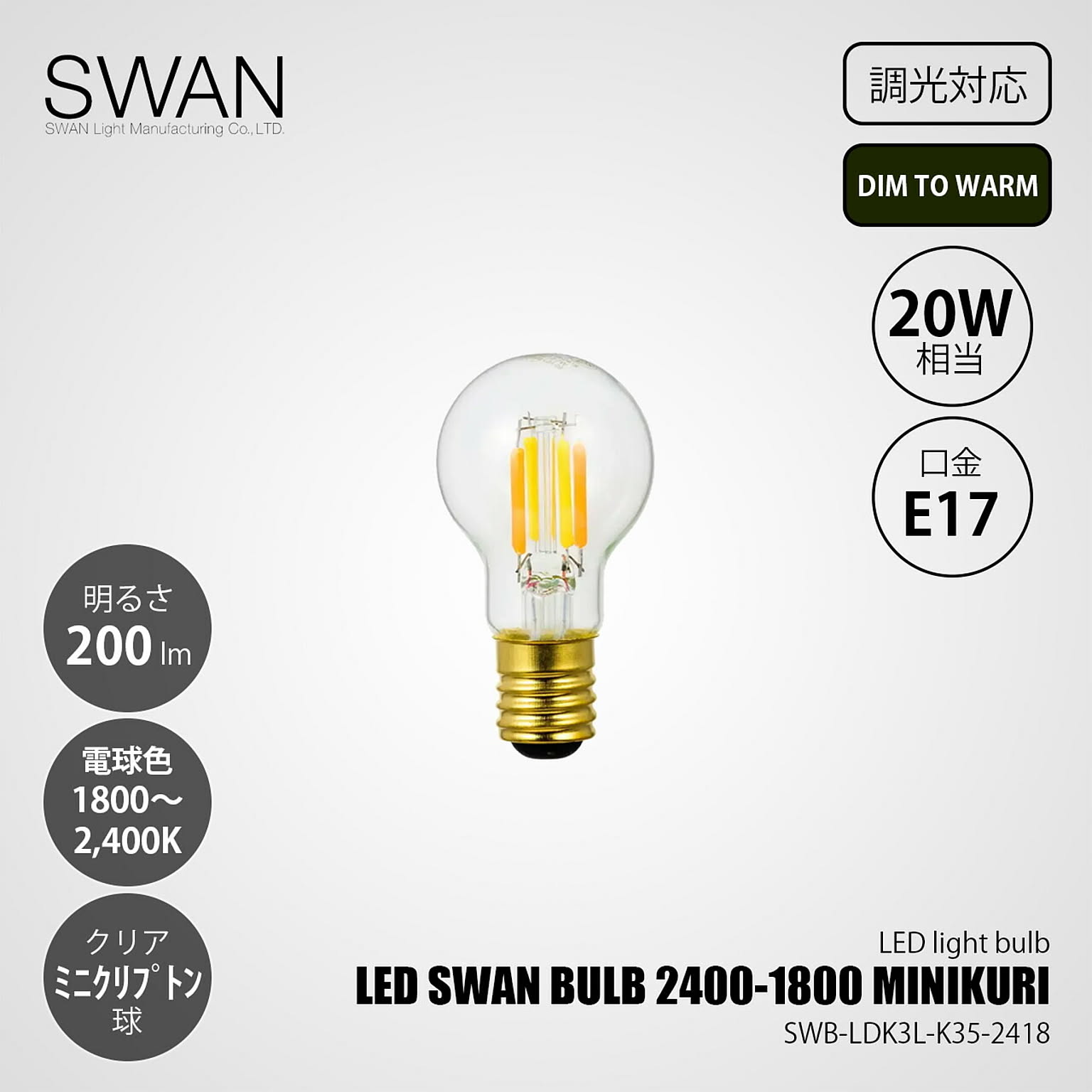 LED SWAN BULB 2400-1800 MINIKURISWB-LDK3L-K35-2418 (調光対応) DIM TO WARM / 20W相当 1800〜2400K(変調)ミニクリプトン形