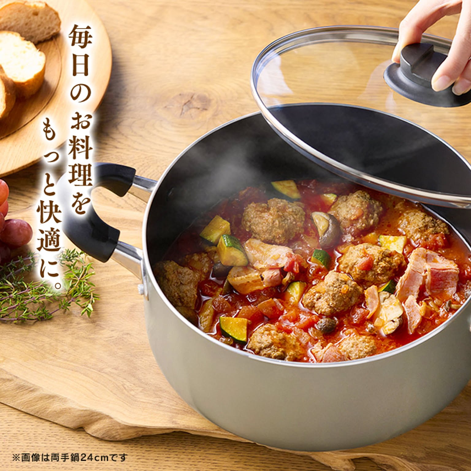 ダイヤモンドコーティングを使用した、こびりつきにくく丈夫で長持ちするなべです。