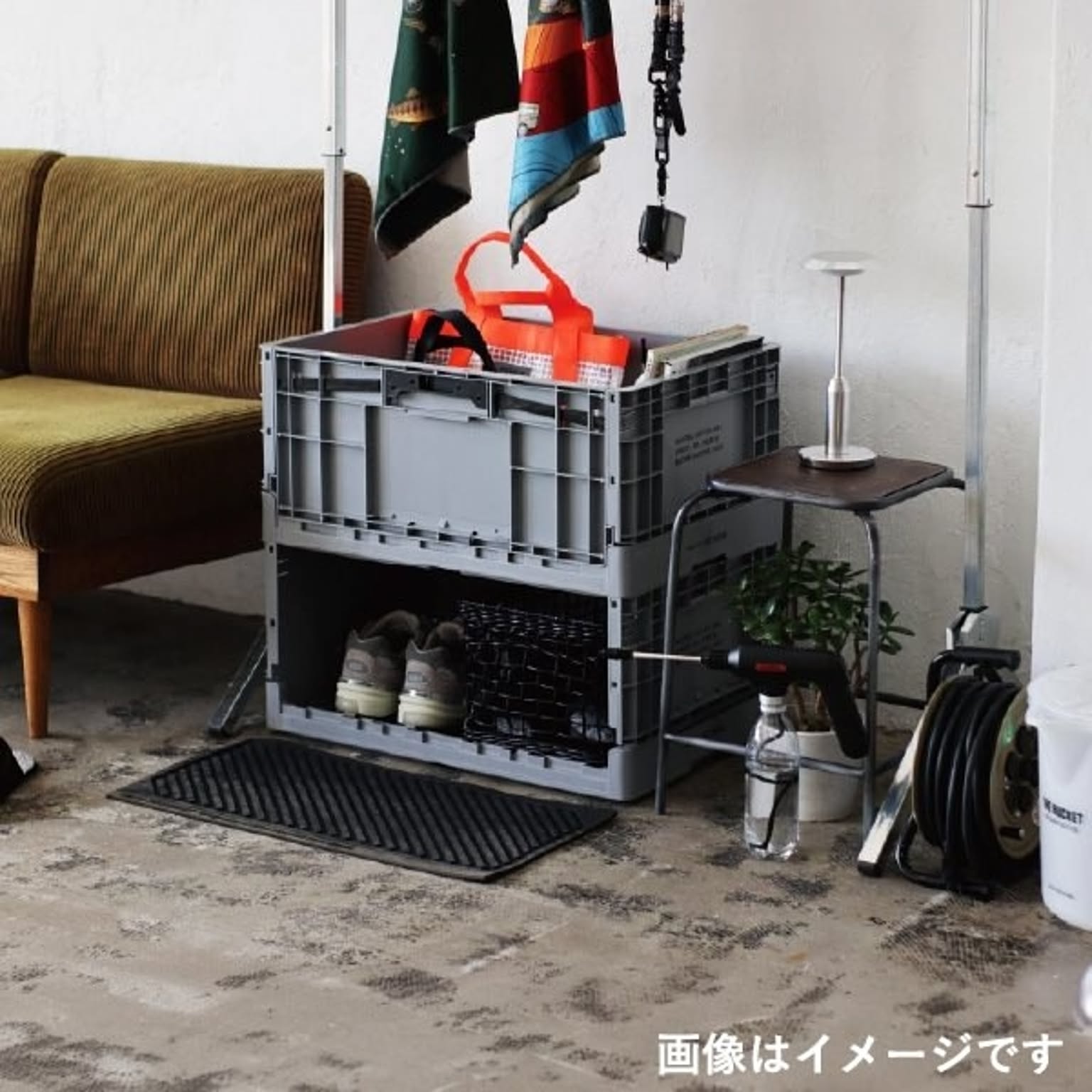 工業用クレートの無骨なデザインを活かした、キャスター付き収納ボックス。マットな質感のポリプロピレンにステンシル風の印字が映えるデザインのこの収納ボックスは、出しっぱなしでもお部屋のスタイリッシュなアクセントになります。収納ケース底面にはスムーズに移動できるキャスター付き。必要な時に必要な場所へ動かせる収納ケースとして、暮らしの自由度を広げてくれます。収納ケース専用フタの溝にキャスターがフィットする構造で、積み重ねてもズレにくく安心。使わない時はコンパクトに折りたためるため、省スペースに設置できる収納ボックスです。リビングの雑誌やブランケットをポンと投げ込むざっくり収納から、キッチンのストックや、クローゼットの整頓、車へ積み込めるアウトドアギアの運搬まで。暮らしのあらゆるシーンに馴染み、スマートに整える便利なキャスター付き収納ケースです。