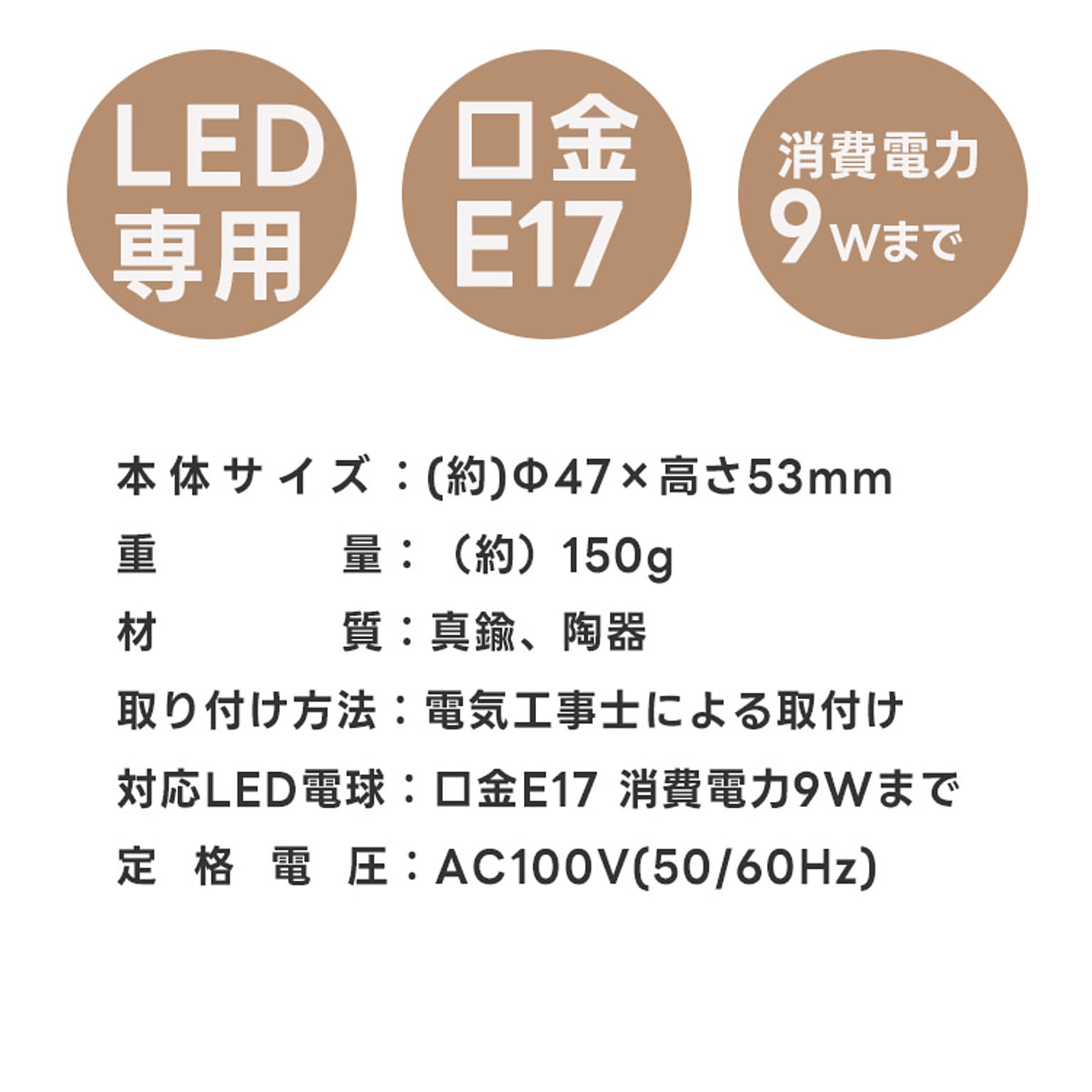 対応電球:口金/E17 消費電力9Wまで(LED電球別売り)