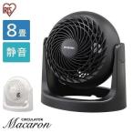 ■商品サイズ(cm)(電源コード含まず)\n幅約25.2×奥行約18.4×高さ約25.6\n■製品質量\n約1.1kg\n■電源\nAC100V(50/60Hz共用)\n■消費電力\n50Hz:28W\n60Hz:27W\n■風量調整\n3段階\n■角度調整\n縦方向:手動 約360°\n■適応床面積\n8畳\n■コードの長さ\n約1.4m\n■材質\nポリプロピレン\n■カラー\nホワイト、ブラック\n\nマカロンのように、コロンとしたフォルム。\n新しい形のサーキュレーター。\nフレームがなくなり、既存モデルよりもさらにスタイリッシュに。\nマット調になり、質感もアップました。\n風量調整ダイヤルは背面に移動し、スタンドがスッキリ。\nより洗練されたデザインに。\n\n[検索用:扇風機 送風 静音 省エネ コンパクト サーキュレーター 夏 涼しい 風 空気 換気 梅雨 循環 空気循環 湿気 4967576470230 4967576470247]\n節電 省エネ 電気代 節電対策