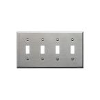 COOPER社製アメリカンタイプのスイッチプレート4口穴用です。\nこちらはプレートのみとなります。\n取り付けネジ付属しております。\n日本製アウトレットボックス(通常の埋込BOX)に取付出来ます。\nアメリカンタイプ(上下でON/OFFするタイプ)専用です。ご注意ください。\n多少のキズ、汚れなどがございます。\n\n 【サイズ】\n全体:約20.8×11.4cm×厚み0.5cm\n開口サイズ:縦2.4cm×横1cm\n取り付けネジ位置(芯〜芯)縦6cm\n\n【材質】\nステンレス(アメリカ製)\n\n【配送/送料】\n 送料:60サイズ\n5000円以上(※沖縄:1万円以上)のお買い物で送料無料です。\n--------------------------------------------------------