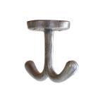 商品コード:64575\n\nアイアンのシンプルなデザインのハングフックです。\n吊り下げ用途でとても使えるアイテムです。\n照明や、植物、小物を吊り下げて飾るのにぴったりなアイテムです。\nどんな場所にも馴染むシンプルなデザインです。\n並べて取り付けてもお洒落です。\n傘を引っ掛けるのにもピッタリなサイズ感です。\nシェルフなどにくっ付けて小物を引っ掛けてディスプレイすると素敵です。\n用途はいろいろ、あなたのDIYに力を貸してくれる万能アイテムです。\nビスとアンカー付きです。\n\nサイズ\nW7.6cm×H4.5cm×D6cm\nビスピッチ:3.1cm\nビス穴:0.4cm\n重さ:100g\n\n材質 アイアン\n \n色 アンティークシルバー