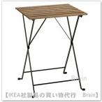■カラー:ブラック/ライトブラウンステイン\n\n■商品の大きさ\n長さ: 55 cm\n幅: 54 cm\n高さ: 70 cm\n\n ■主な特徴\n- 使わないときはコンパクトにたためます\n\n- 耐久性を高めつつ、木材の自然な表情を楽しめるようにするために、家具の表面には半透明のウッドステインを施しています\n\n■パッケージの大きさと重さ\n パッケージ数:: 1\n商品番号:801.651.29\n\n ■お役立ち情報\n2人用\n屋外のみの使用をおすすめします\n\n■素材 & アイテムのサイズと重量\nテーブルトップ:アカシア無垢材, アクリルステイン\n脚/ レール/ 支え:スチール, ポリエステル粉体塗装\n脚:ポリプロピレンプラスチック\n\n■この商品は組み立てが必要です