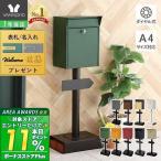 ●商品について\n玄関をおしゃれに演出するスタンドポスト「Lon(ロン)」。\nスリムなのに大容量で、A4封筒・クリックポスト・レターパックなどもしっかり収納できます。\n無駄のないシンプルデザインと豊富なカラーバリエーションで、戸建て住宅や店舗のエントランスにもぴったり。\nアンティーク加工あり/なし、脚部カラータイプなど選べるデザインバリエーションが魅力です。\nかすれがオシャレなアンティーク風アルファベットシール付きで、表札風アレンジも楽しめます。\n防犯面にも優れたダイヤル錠付きで、郵便物をしっかり守ります。\nさらに土台にはレンガなどを入れて安定感を高めたり、付属アンカーで固定も可能です。\nスリムなのに存在感があり、おしゃれで機能的な置き型ポストをお探しの方におすすめ。\n新築祝いや引っ越し、開店祝いのギフトにも喜ばれる人気の郵便受けです。\n\n\n●よく検索されるキーワード\nポスト おしゃれ 後付け 施主支給 持ち込み 工務店 おすすめ 住宅会社 鍵付き 工事不要 組立簡単 表札シール グリーン レッド ブラック\n\nスタンド型 オレンジ 黄色 白 くすみカラー グレージュ ホワイト