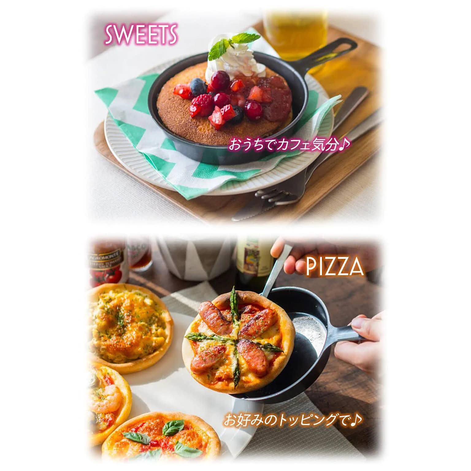 こちらのユーザーさんが購入されたミニスキレット。調理後そのまま食卓に並べても絵になるので、料理やお菓子作りに役立ちそうです。ユーザーさんのように植物やコーヒーと並べると食卓がワンランクアップしますね!