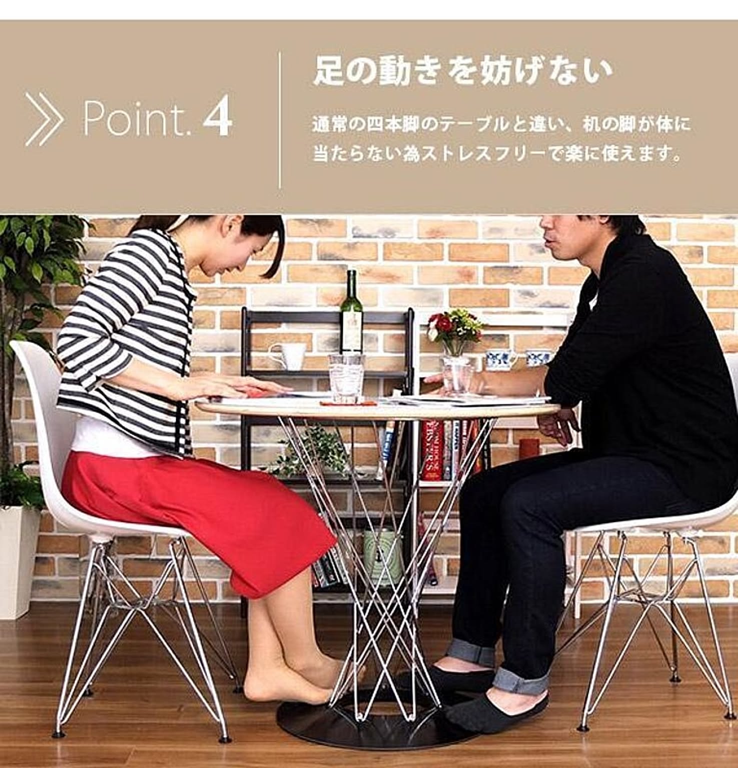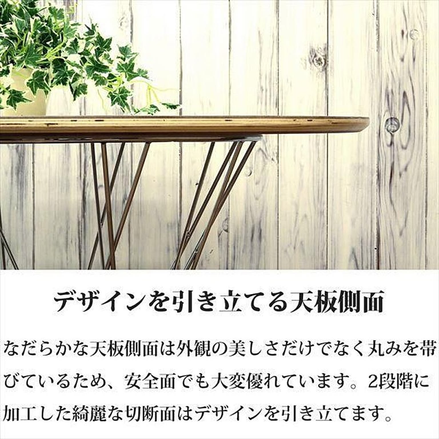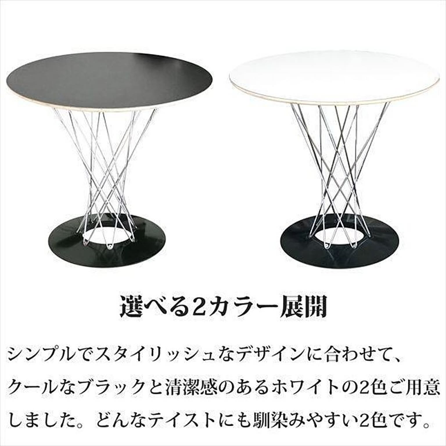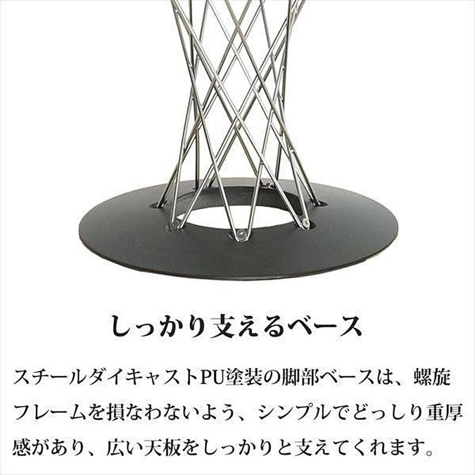 プライウッドの天板と螺旋を描くワイヤーの調和が美しく、カフェテーブルにもダイニングテーブルにも使えるマルチなデザインです。