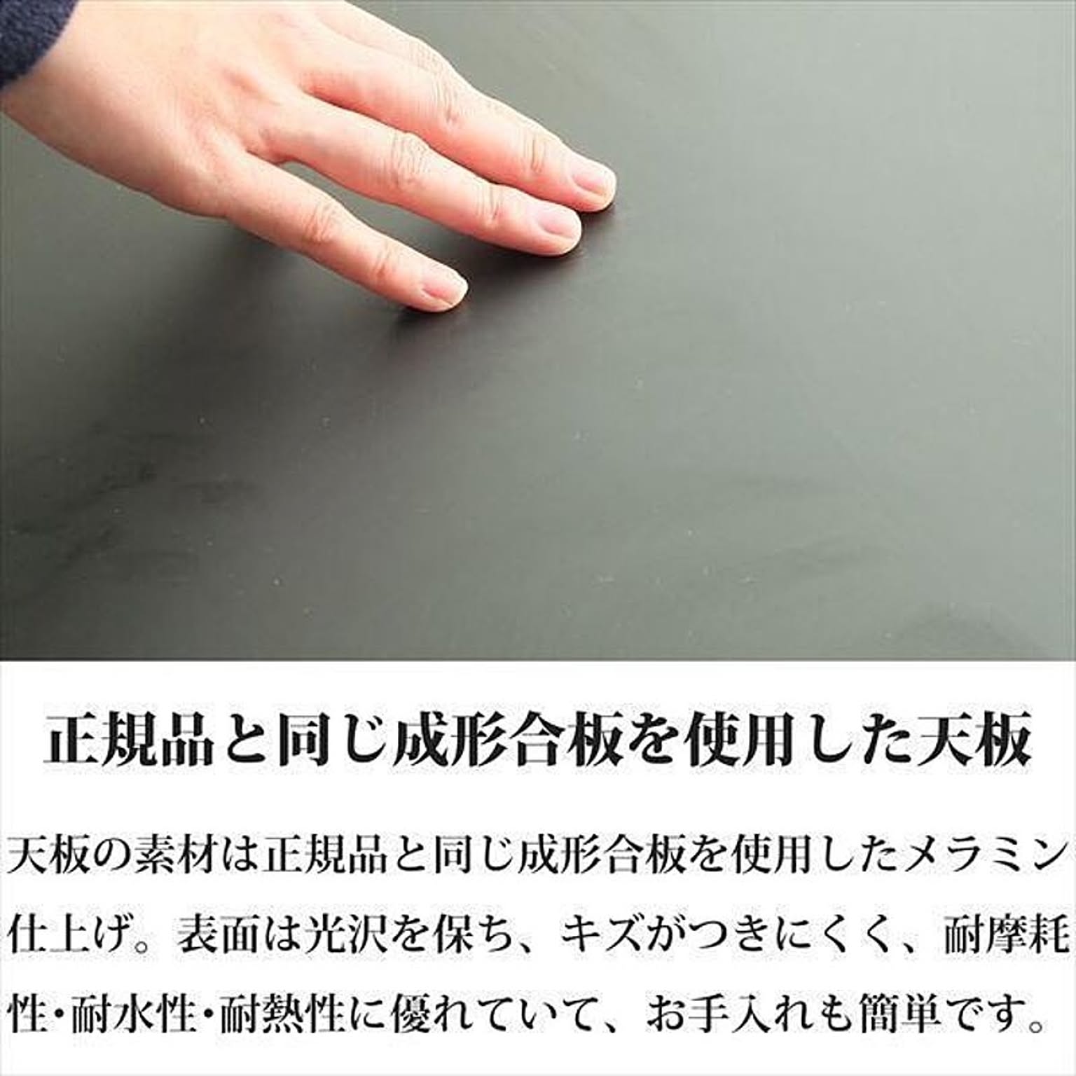 天板の素材は表裏ともにプライウッド成型合板のメラミン張り。