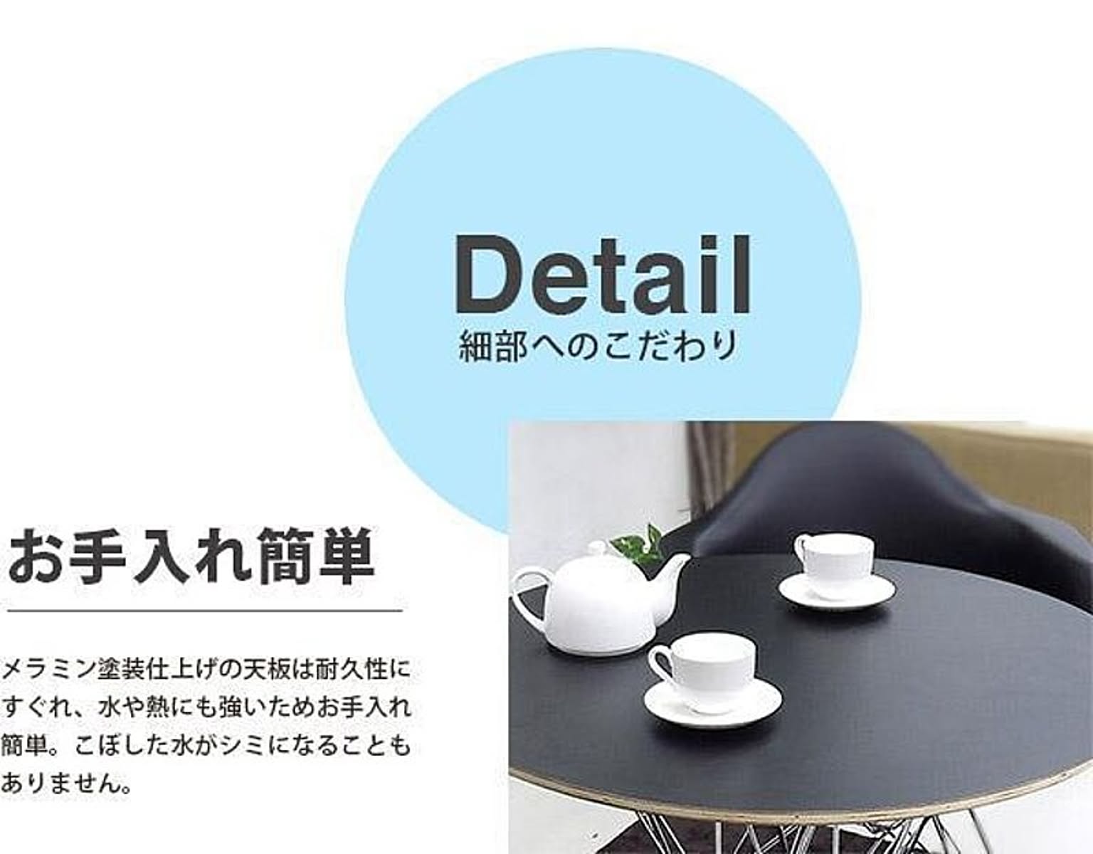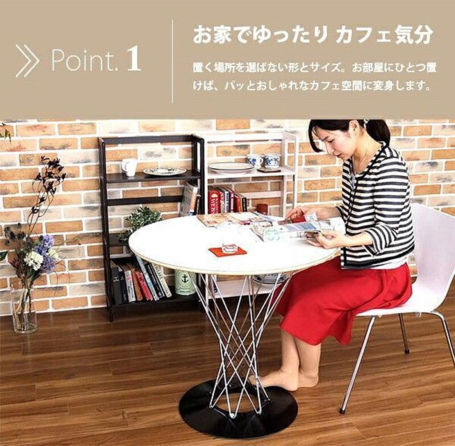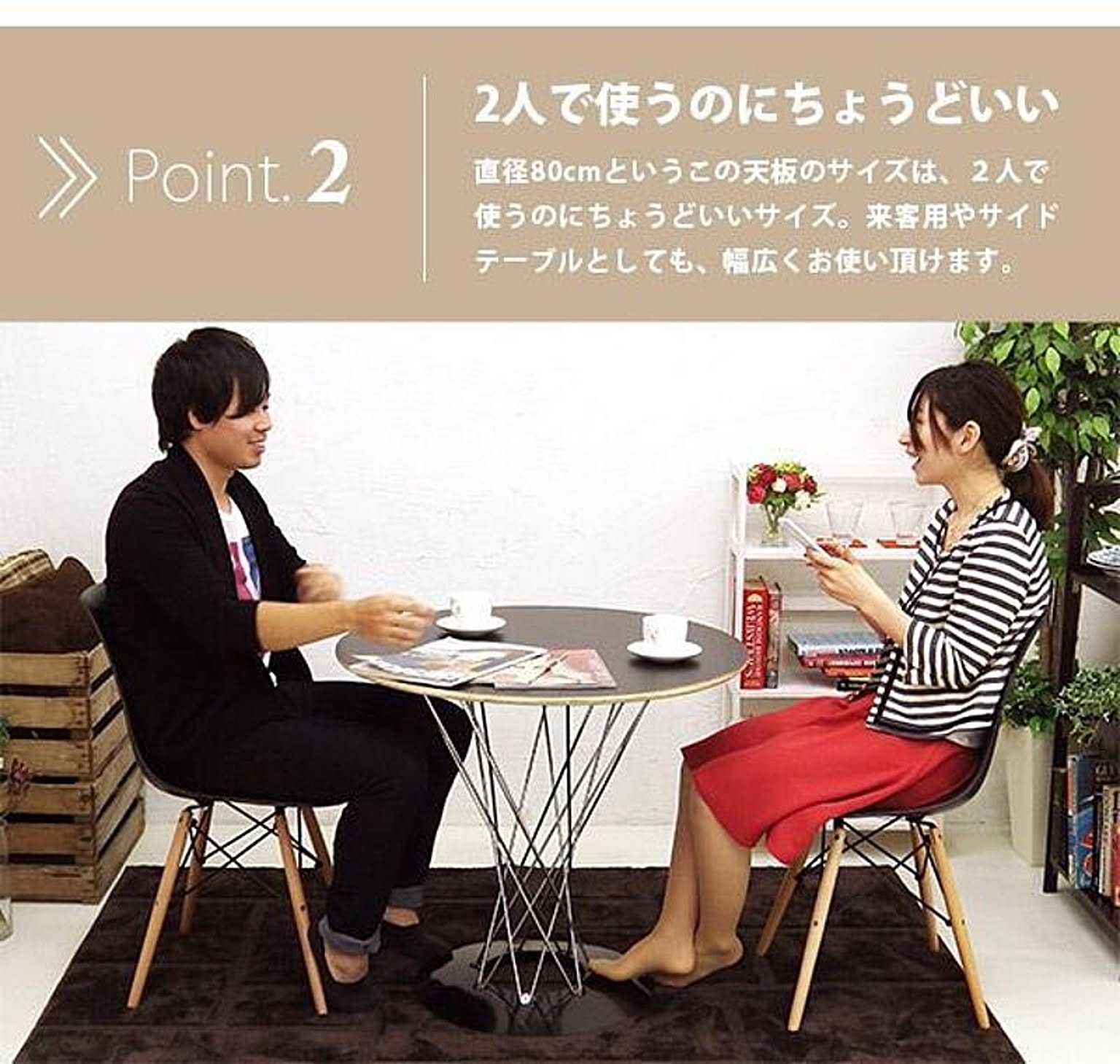 2人がけのカフェテーブルとして使うほか、お部屋のサイドテーブルとして、または食卓として、小さなお住まいでも取り入れやすい使い勝手の良いサイズとなっています。
