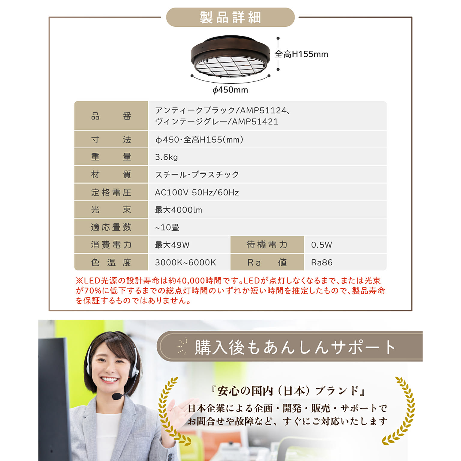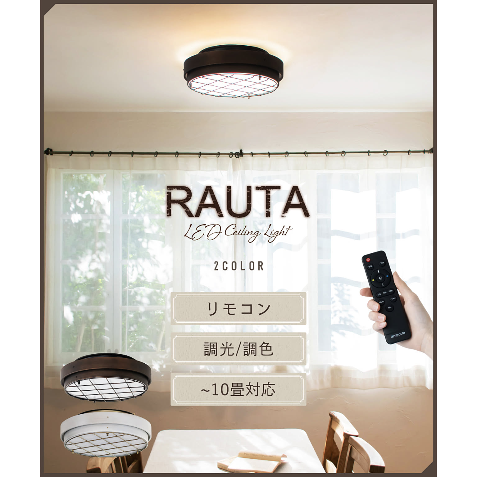 Ampoule シーリングライト 照明 おしゃれ LEDシーリングライト アイアン リビング ダイニング 寝室 レトロ インダストリアル ブラック グレー 10畳 リモコン RAUTA ラウタ