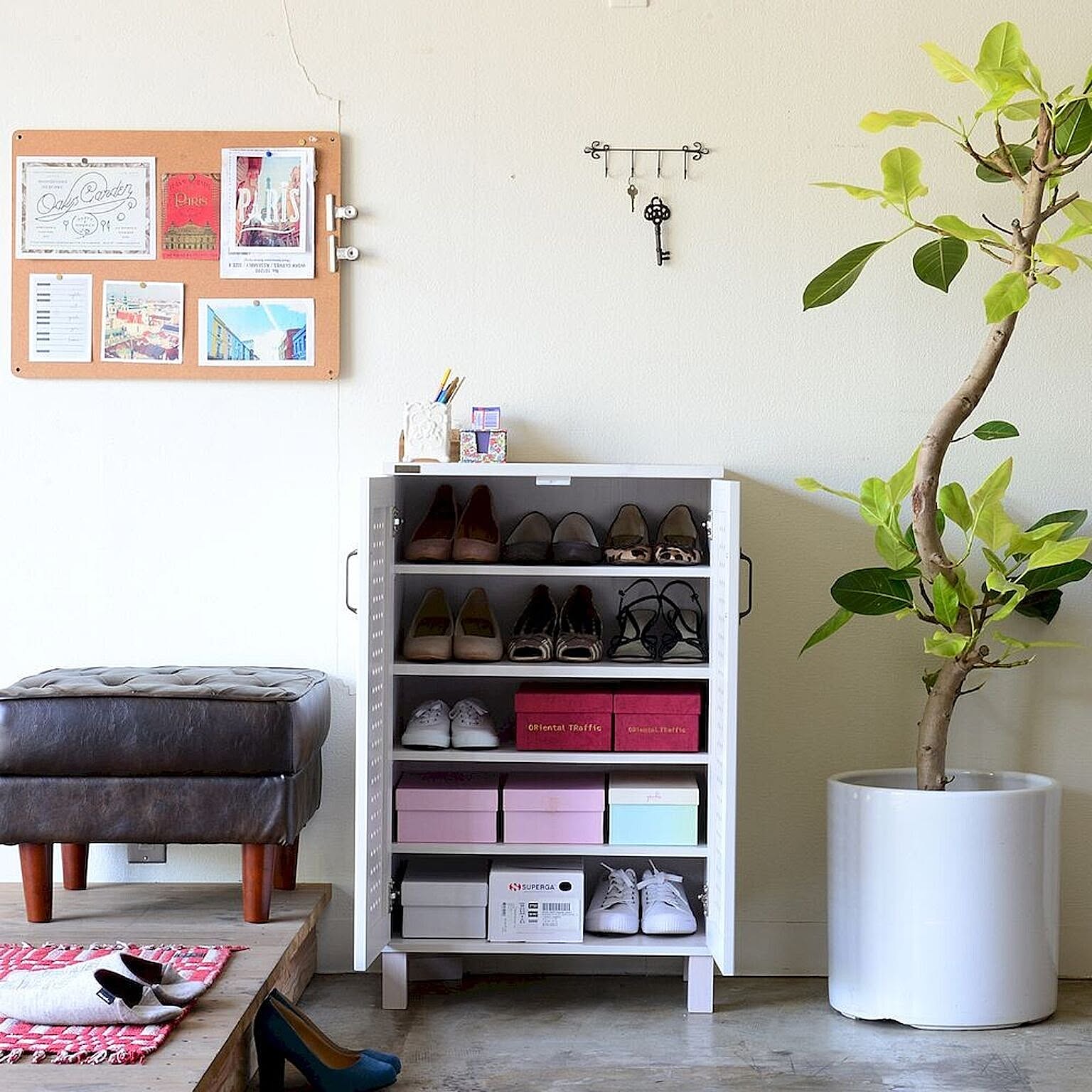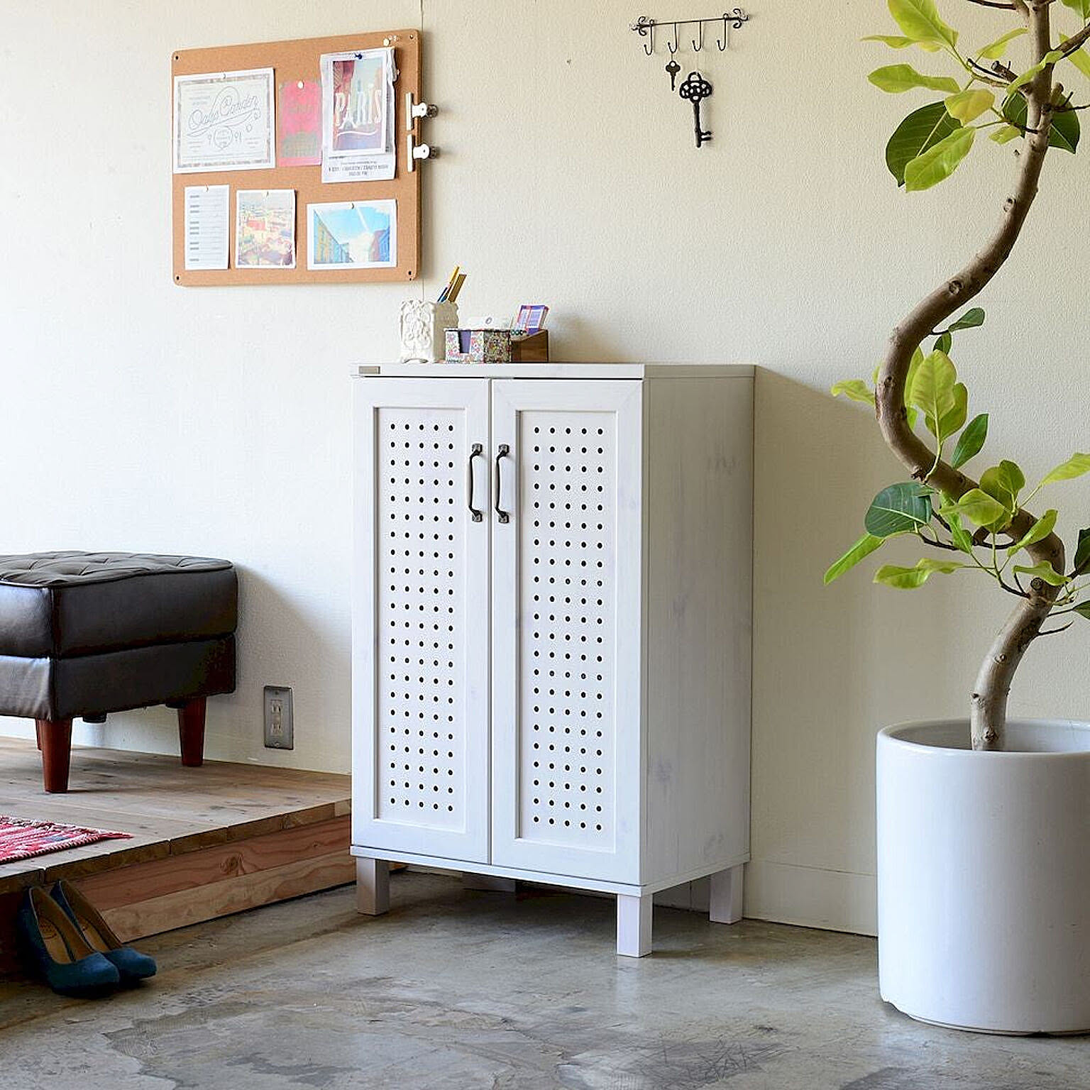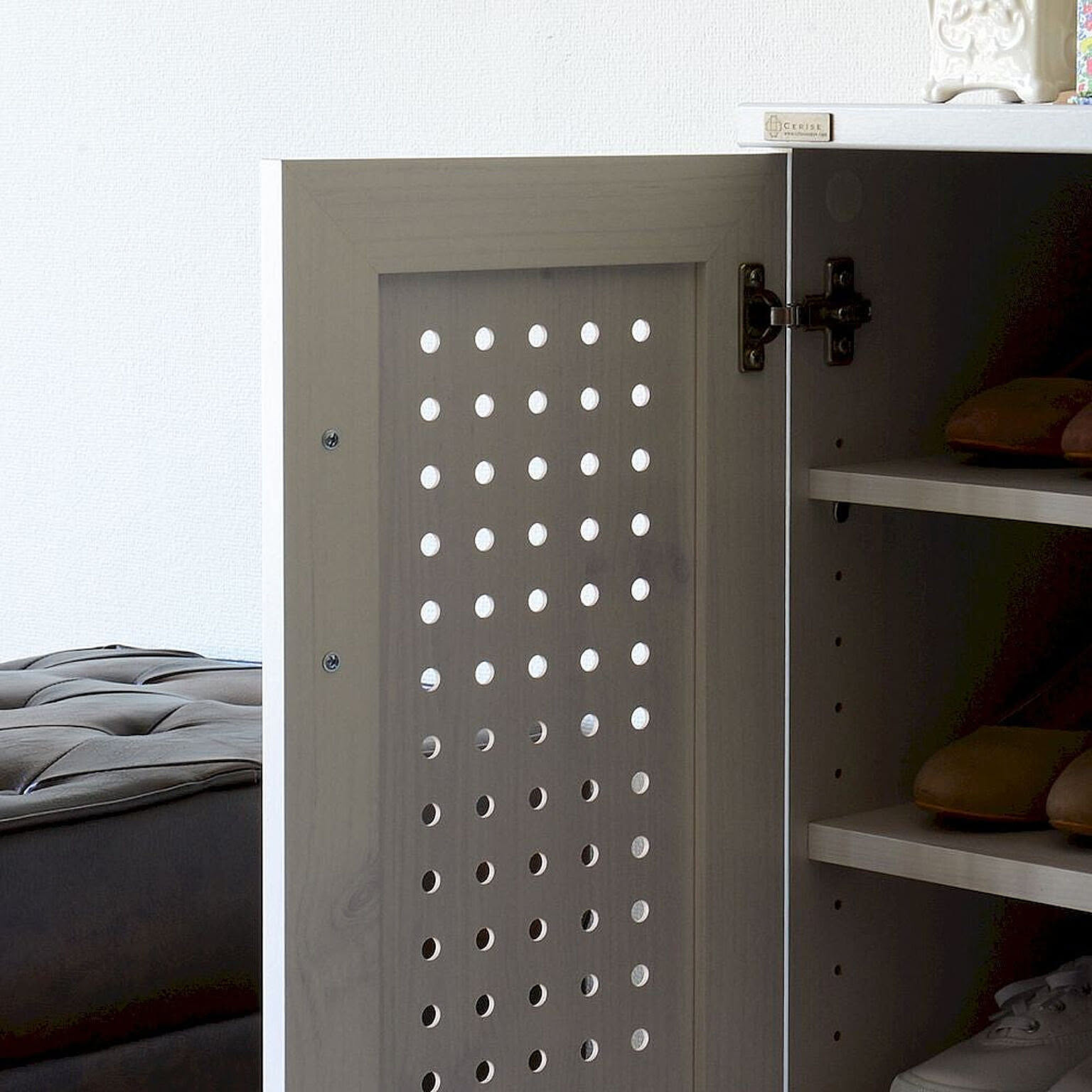 通気性が高くておしゃれ。パンチングが特徴のデザインシューズストッカー。