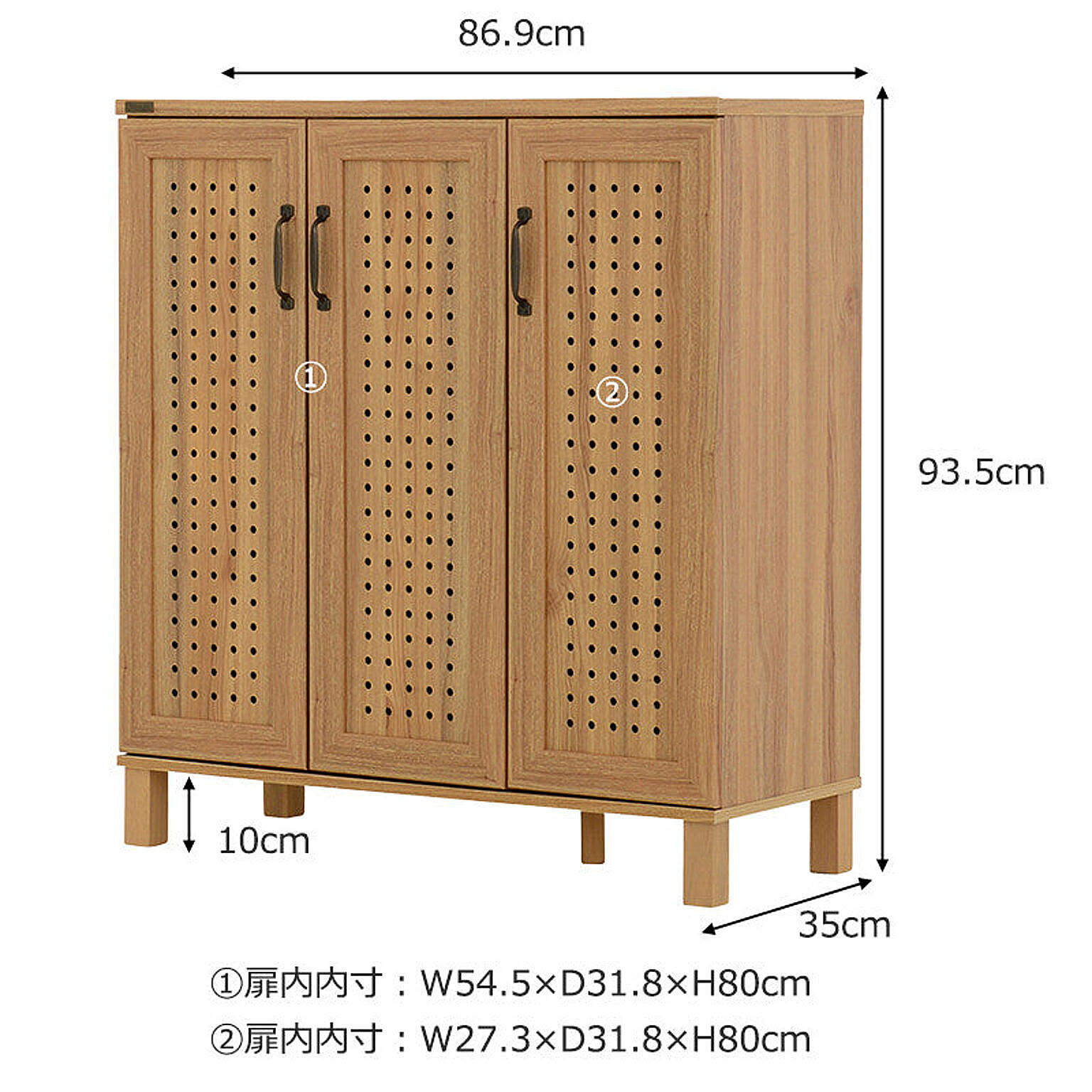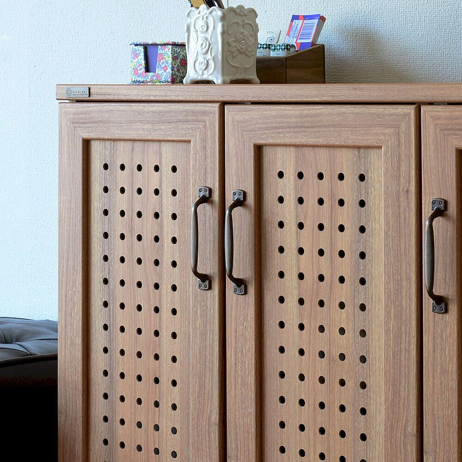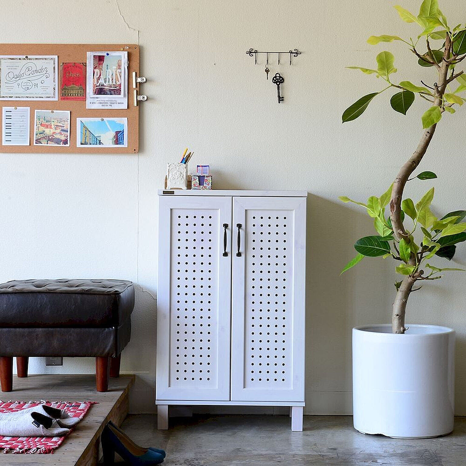 通気性が高くておしゃれ。パンチングが特徴のデザインシューズストッカー。