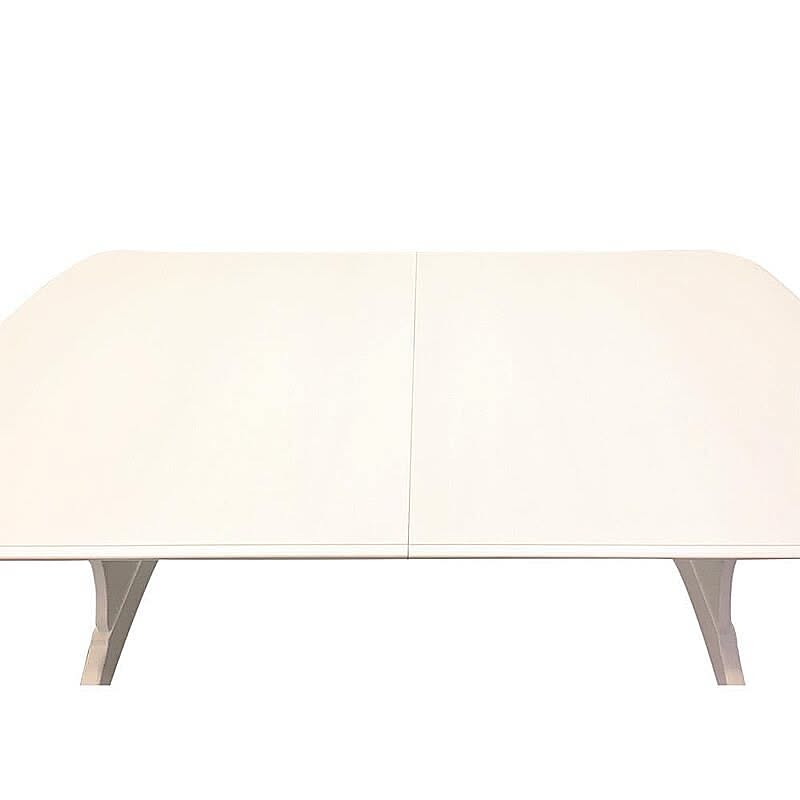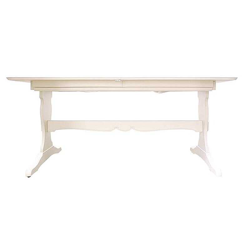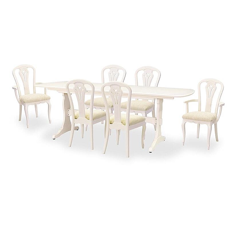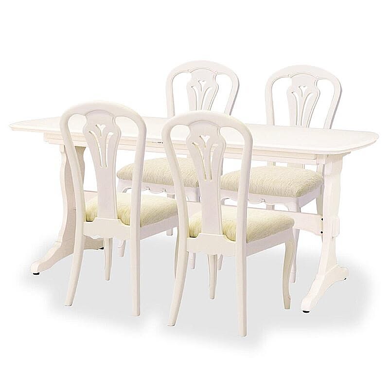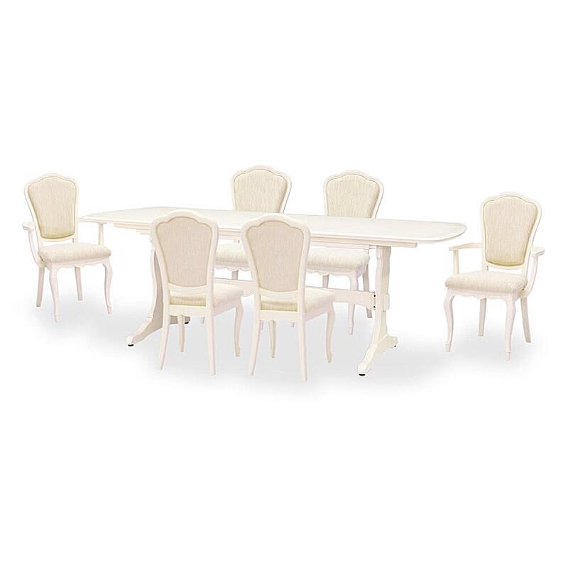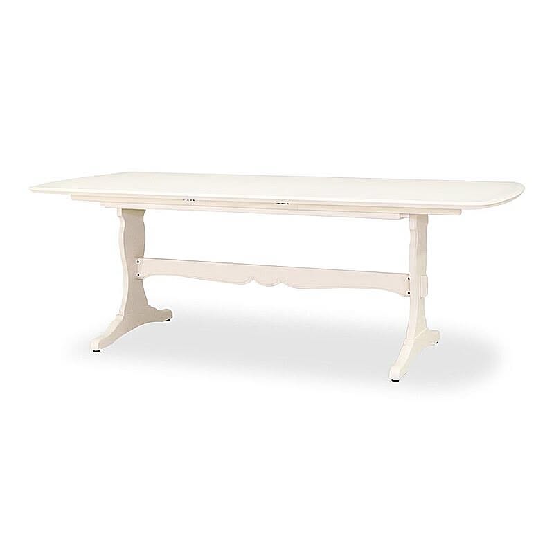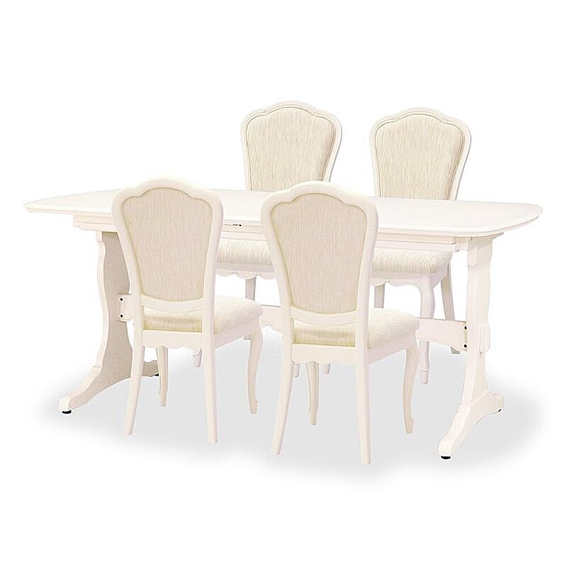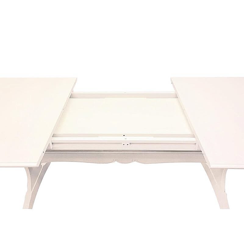 脚部にマホガニー無垢材を贅沢に使い、表面になめらかな木肌のリンデン材で木肌が薄っすら残るホワイトカラーで上品な印象に仕上げ、フレンチエレガンスの代名詞といえる「カブリオールレッグ」(猫脚)と、なめらかな女性的な美しいラインと無垢材を削り出した彫刻が特徴です。