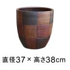 植木鉢 鉢カバー おしゃれ 色付き素焼き 大型 モザイク\n\n直径37cm 高さ38cm 口径33cm\n底直径24cm 内高さ36cm 内底直径20cm\n(プラスマイナス5%位のサイズ差があります)\n重さ : 約 8kg\n容量 : 約 28リットル\n色 : 茶〜黒\n◆テラコッタの上に塗装する製法で独特の色合いを表現しています◆\n底穴 : 有\n直径32cm以下の鉢の「鉢カバー」に使えます\n(高さに余裕が無いのでご注意ください)
