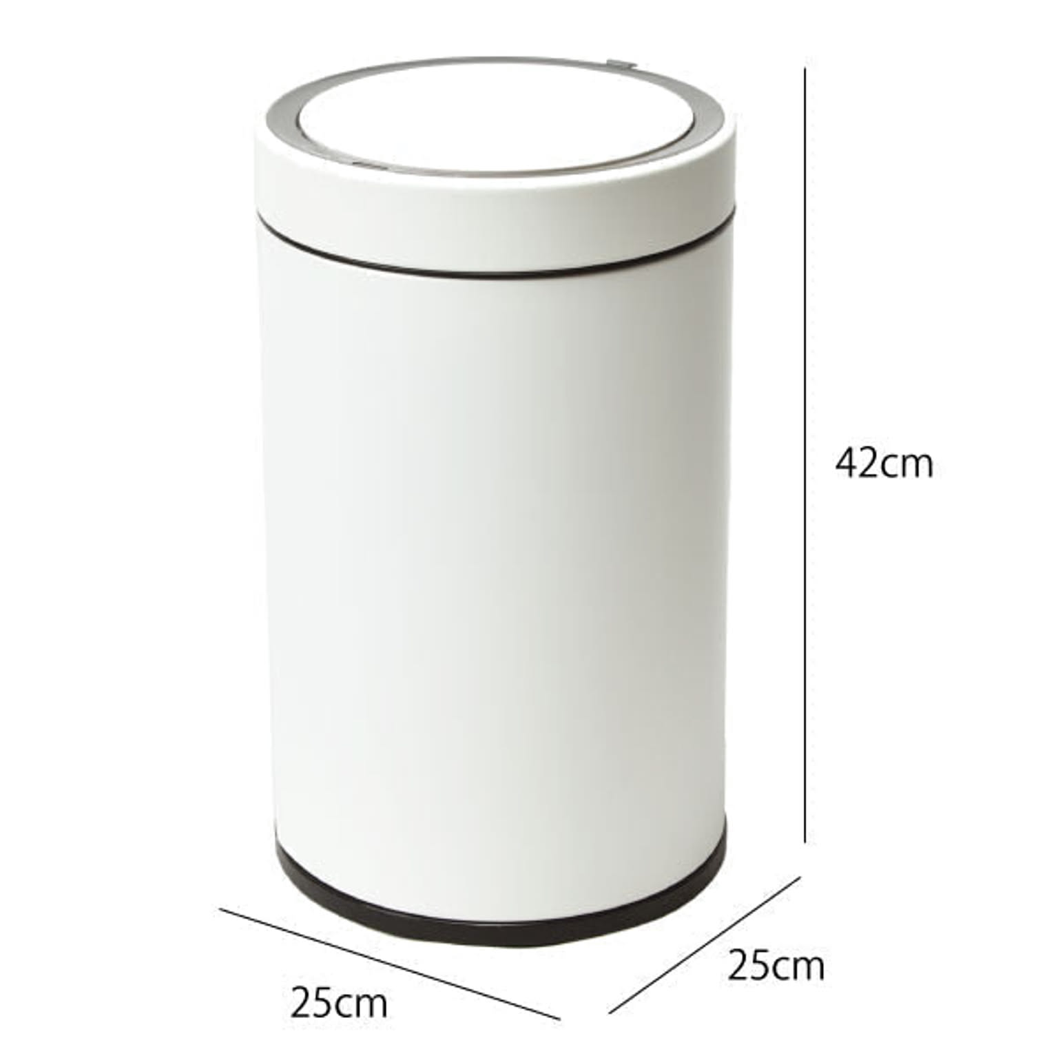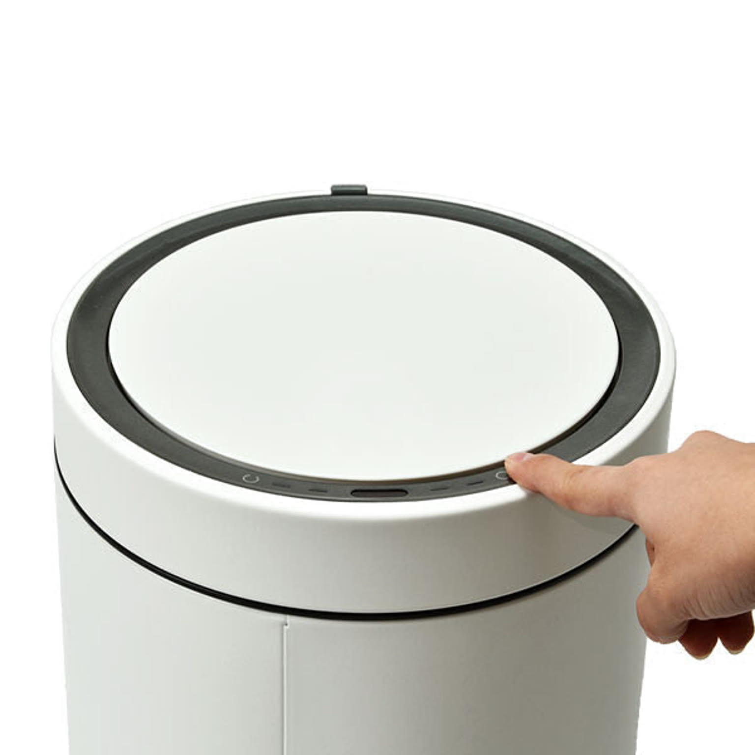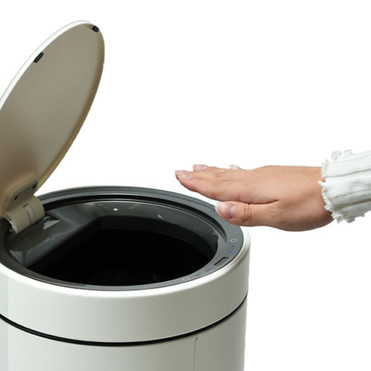 手をかざすと蓋が自動で開閉するセンサー式ゴミ箱です。 センサー上方約15~25cm付近で反応し、開閉はLEDでわかりやすくなっています。 オゾン発生器でゴミ箱内のにおいも脱臭できるので、生ゴミやおむつ捨てにもぴったり。 開閉音やオゾンでの殺菌中もほとんど音がしないのでストレスなく使えます。 タッチスイッチで開閉も可能で、開けっ放しで使うこともできます。 USBで充電できるのでコードがなく、本体もコンパクトなので場所をとりません。 用途に合わせて9Lと12Lからお選びいただけます。