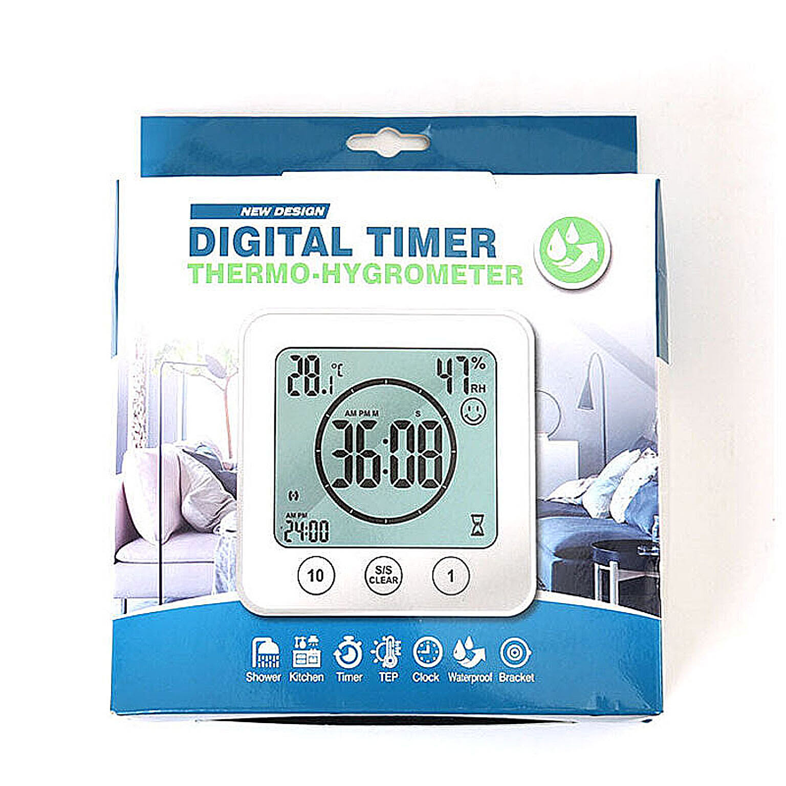 ・お風呂場やキッチンなど水回りにもおける多目的モニタータイプのデジタル時計が登場。