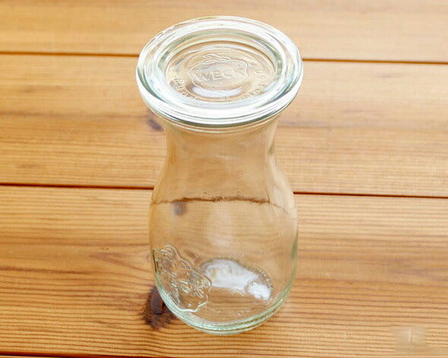 ワインやジュースを入れるのに最適なジュースジャーの6個セットです。可愛らしいフォルムは手にしっくりと馴染んでくれます。ジャーとして普段使いはもちろん、自家製の果実酒をつくって長期保存できるのもWECKならではの魅力です。すぐにお使いいただけるように、オプションのゴムパッキンとクリップを6個分お付けしました。プラスチックカバーは、Sサイズをお使いください。
