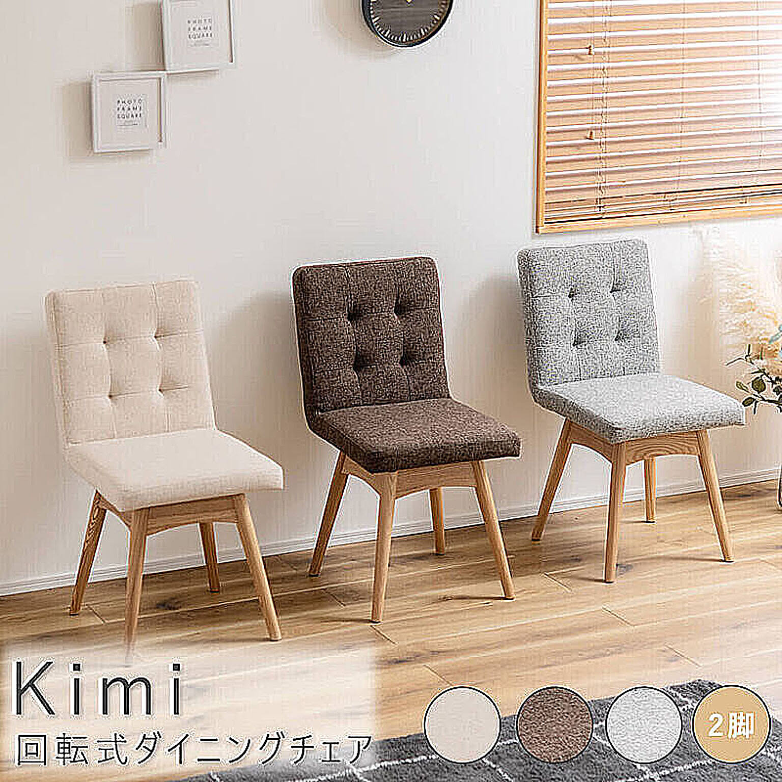 Kimi(キミー) 回転式ダイニングチェア 2脚セット m11861