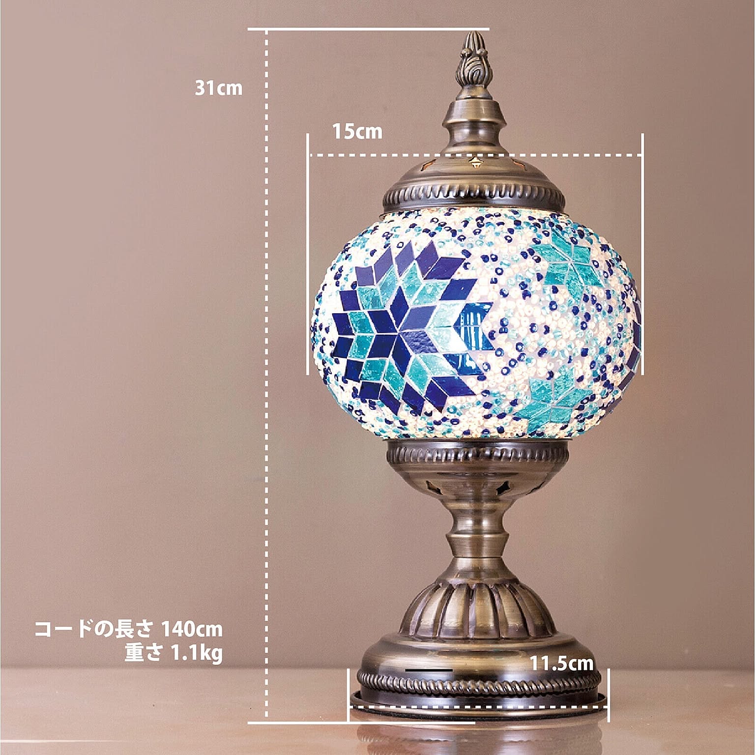 エキゾチックなガラスの輝きが美しいテーブルランプです。