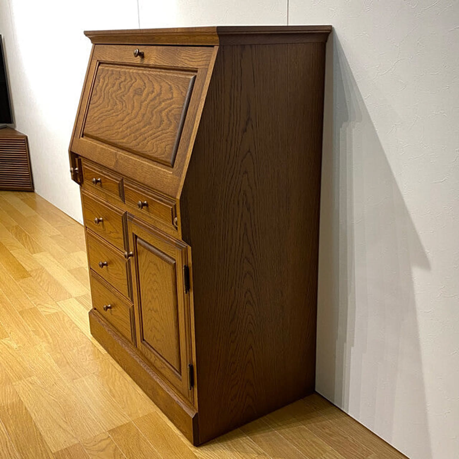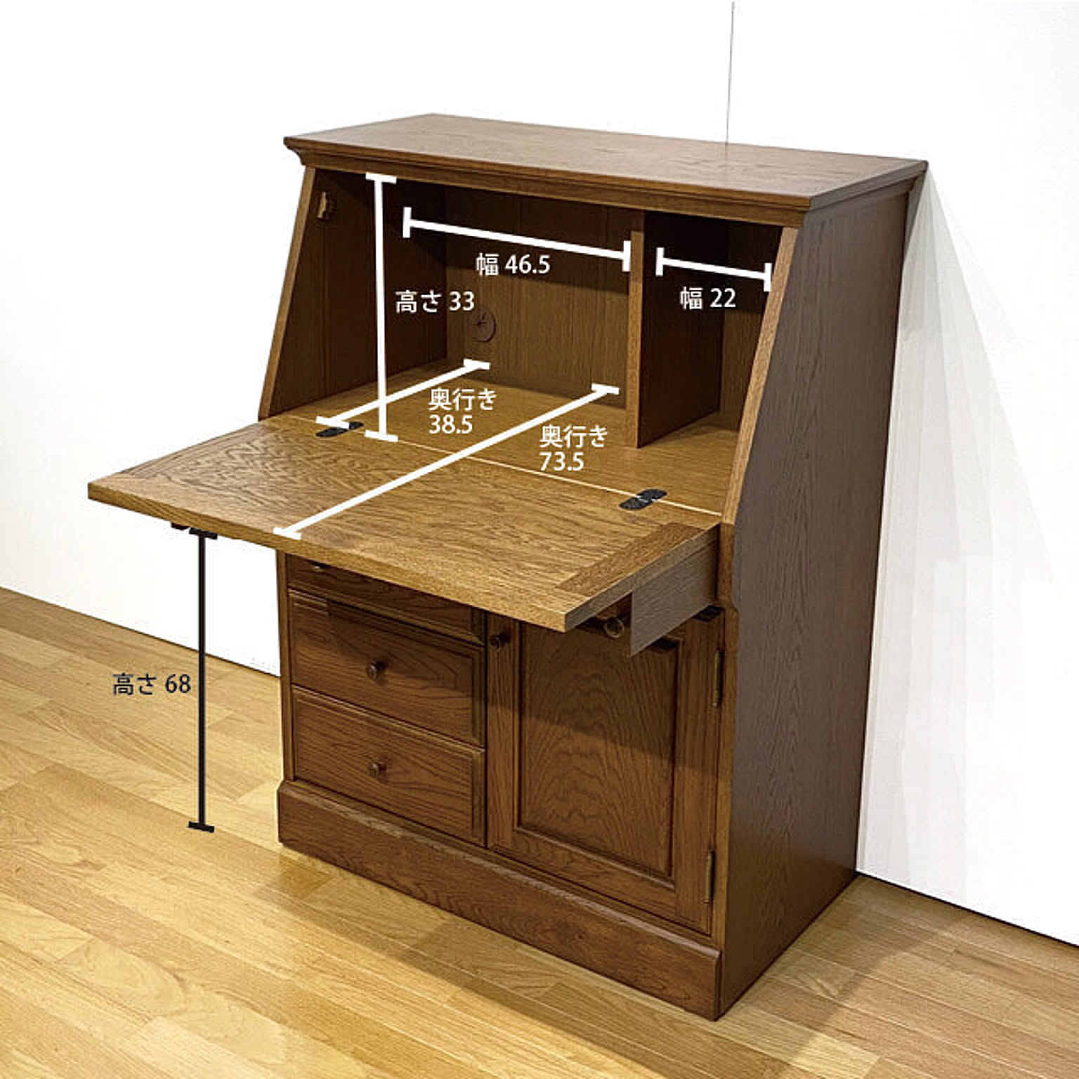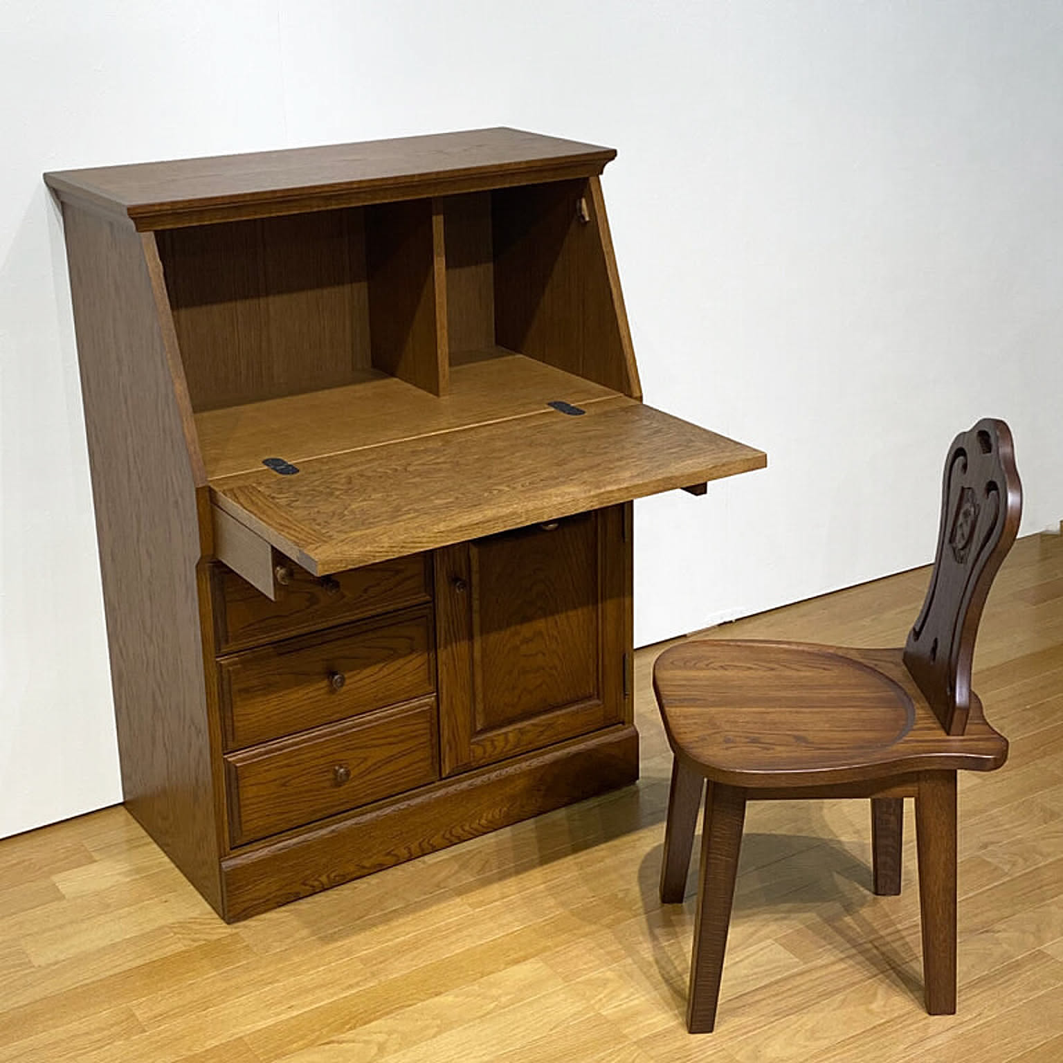 国産 ライティングデスク ライティングビューロー 80 ナラ材 ブラウン色 デスク パソコンデスク 日本製
