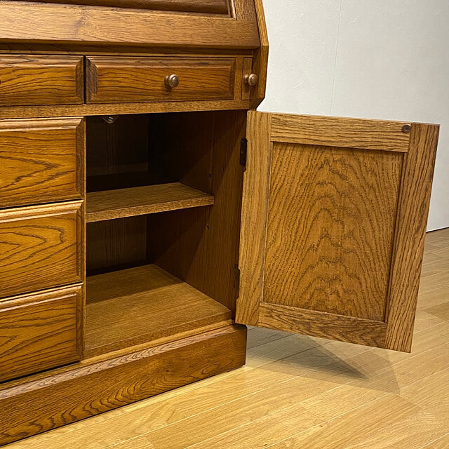 使わない時は隠してすっきりできる! 日本製の丁寧な作りで愛用のデスクに 【国産・ナラ無垢】 美しい北海道のナラ無垢を使い日本の職人が丁寧に作り上げた逸品です。 ナラ無垢材は年月とともに色艶を増しずっと使える愛用のデスクになります。
