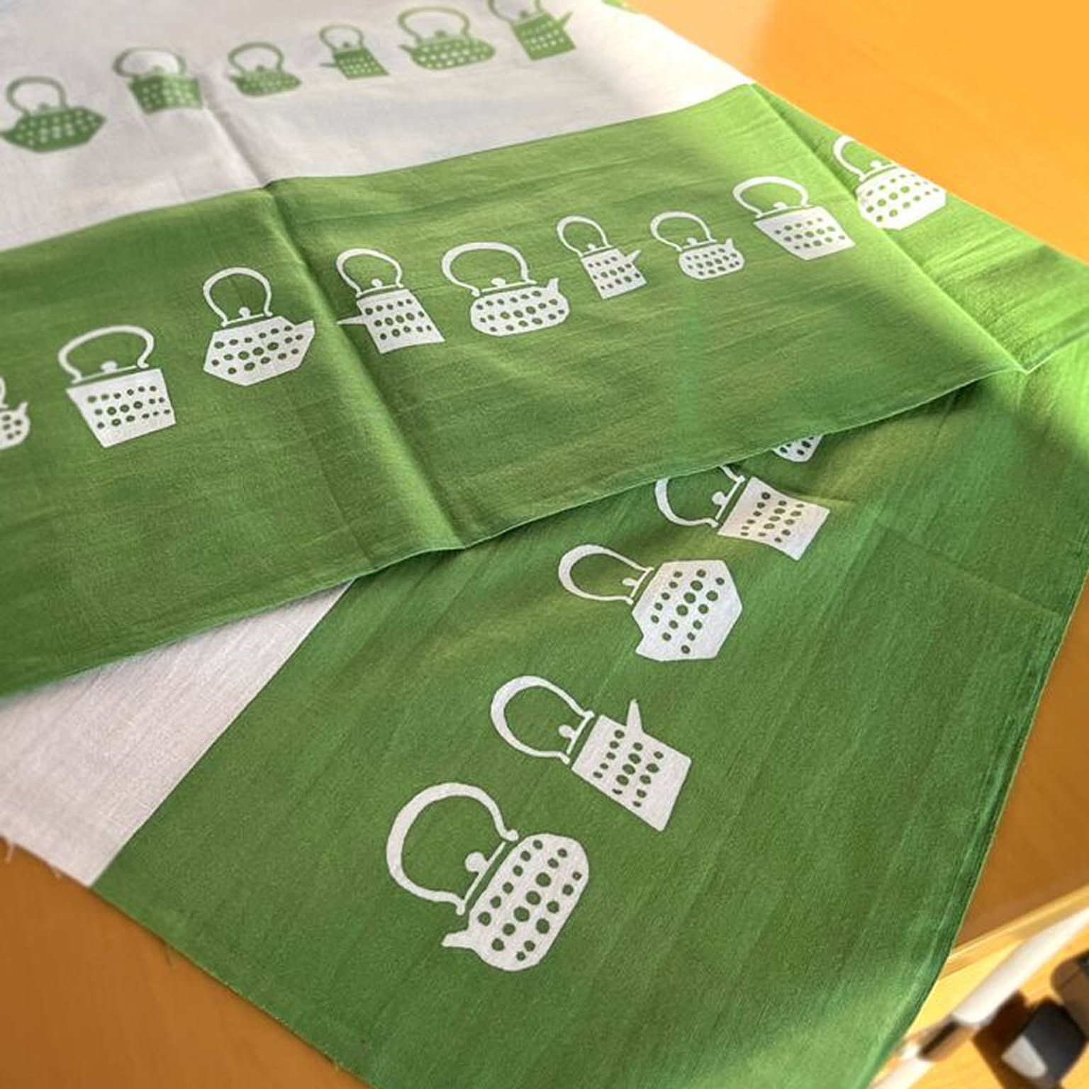 こしぇる工房人気の手ぬぐいは地元岩手の特産品、鉄瓶デザイン。