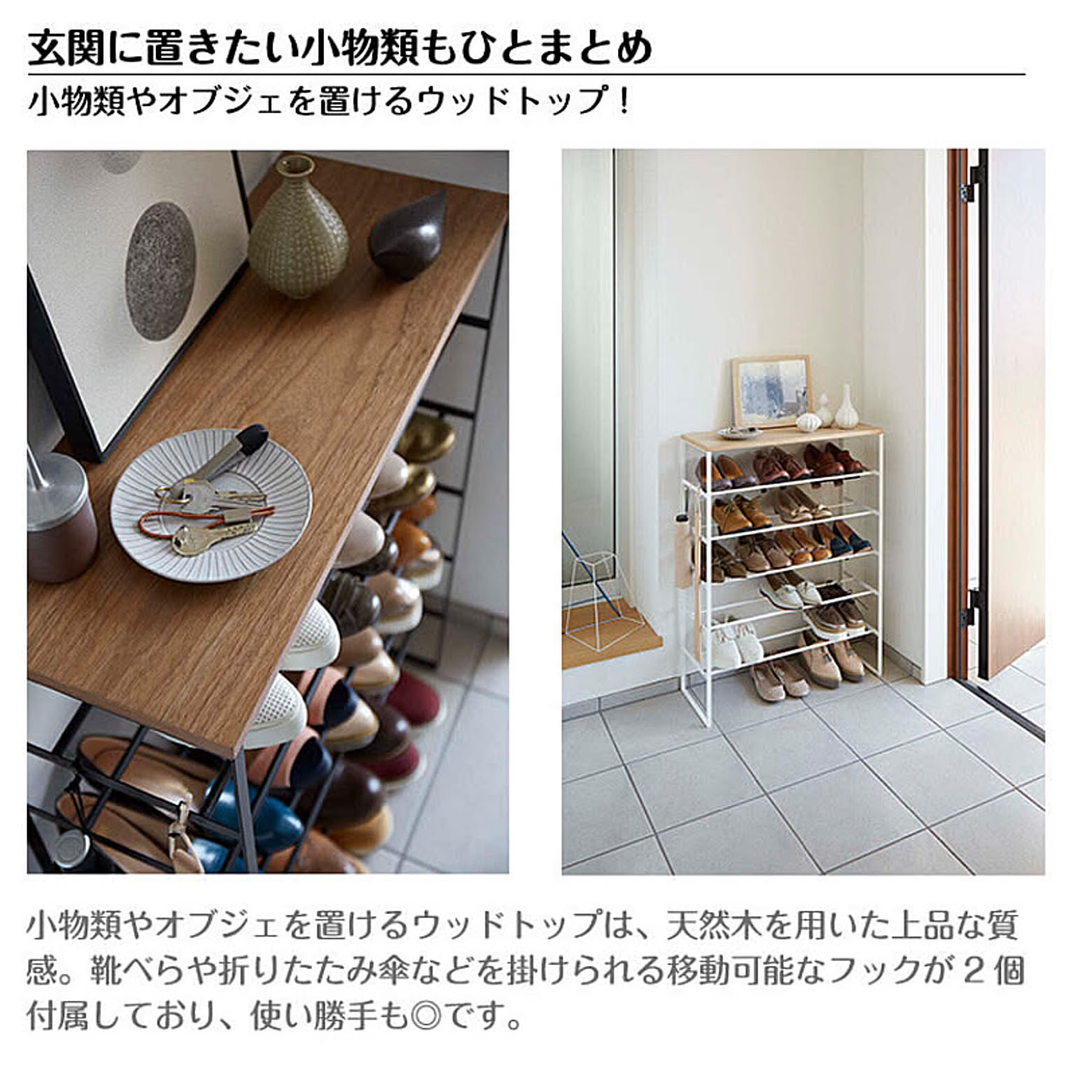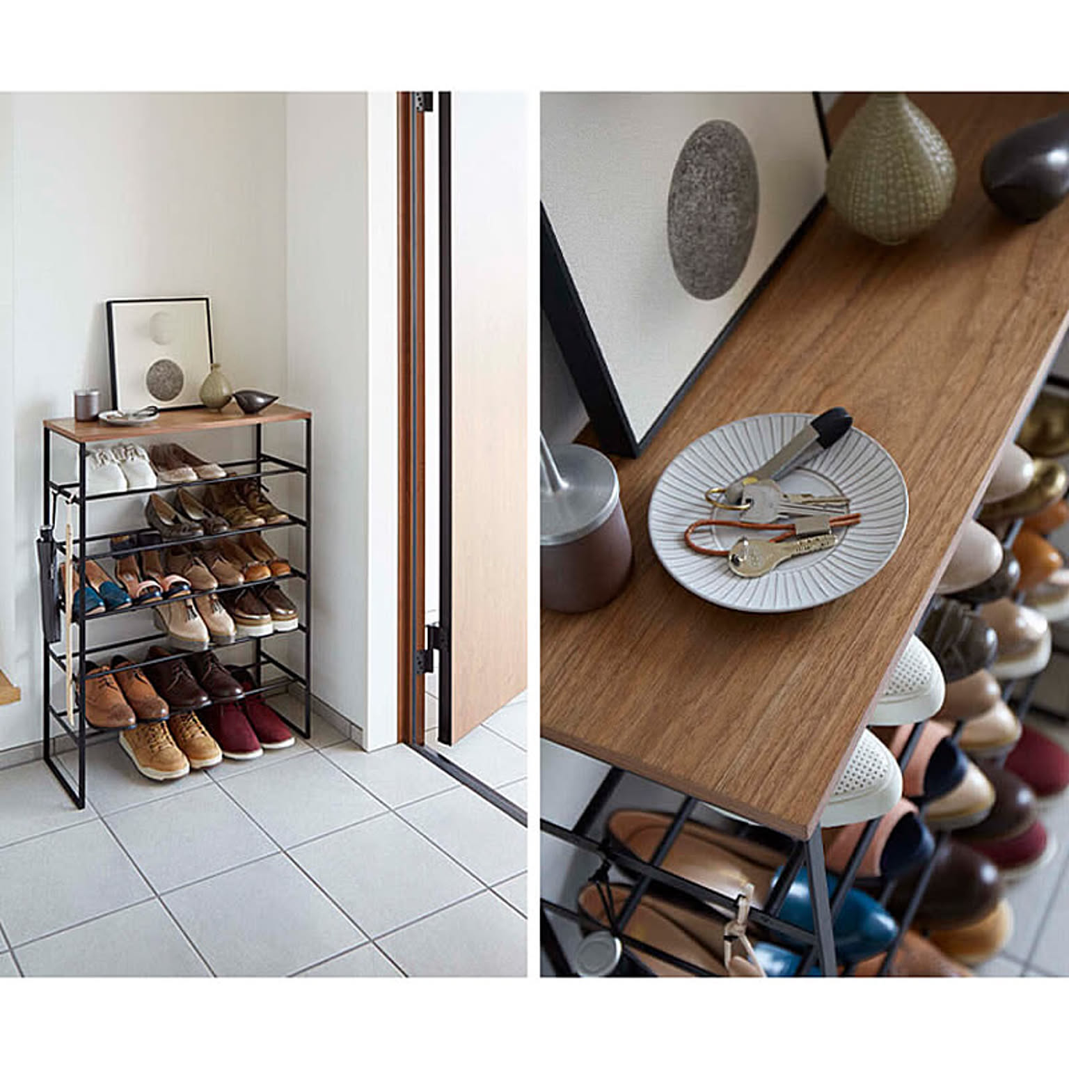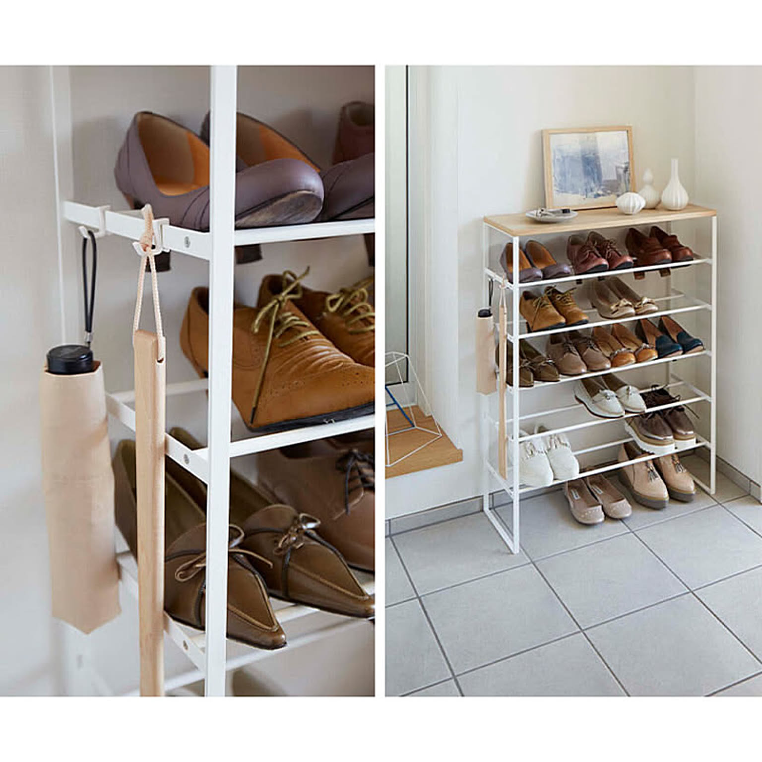 misa.さんは「天板付きシューズラック」を愛用されていました。スリムなので下駄箱の棚の上にも乗せられます。目線の高さに靴があるので、履きたい靴をすぐに見つけられそうですね。出し入れしやすいので、靴の出しっぱなし防止にもなりそうです。