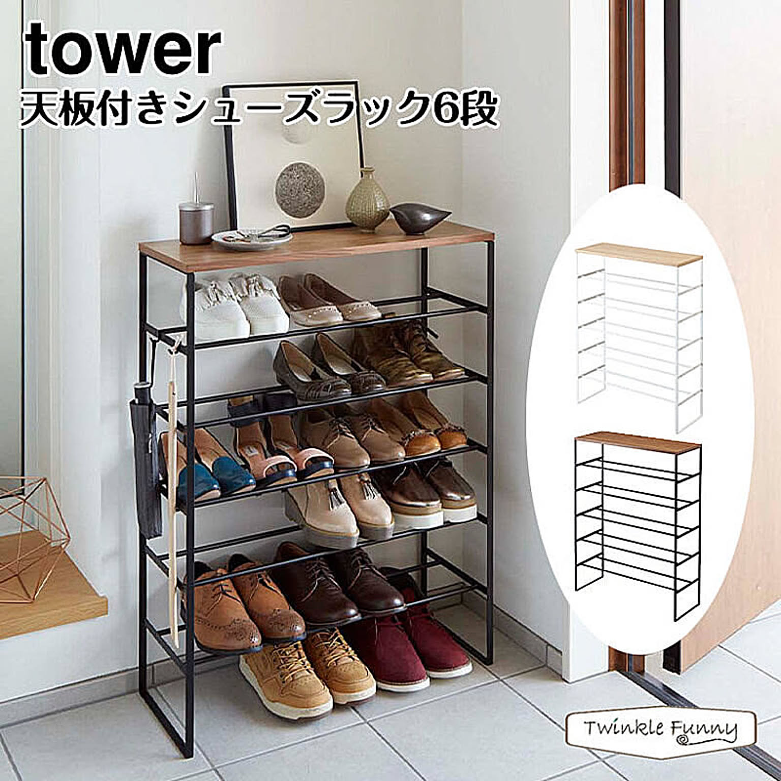 【正規販売店】tower 天板付きシューズラック 6段 タワー 山崎実業 3369 3370 TF-32243