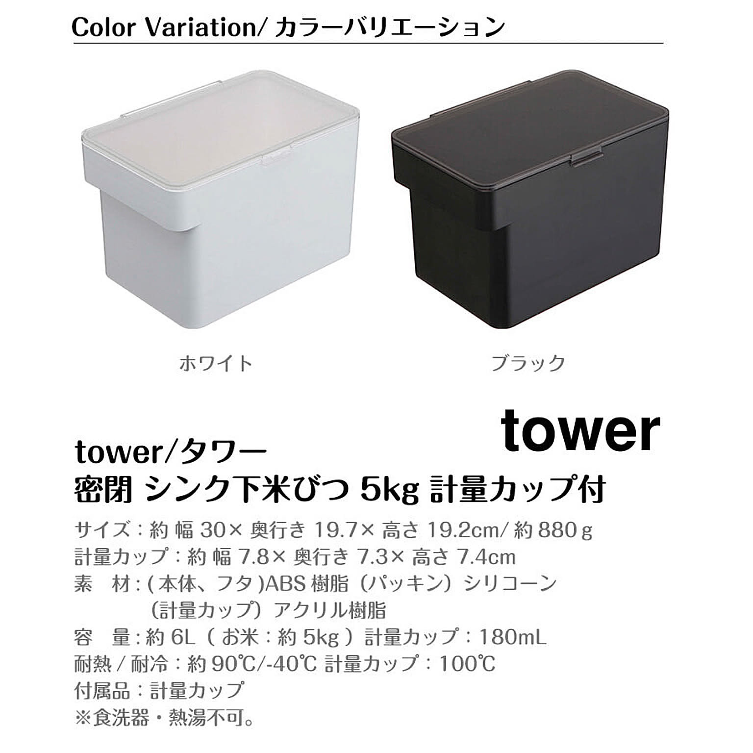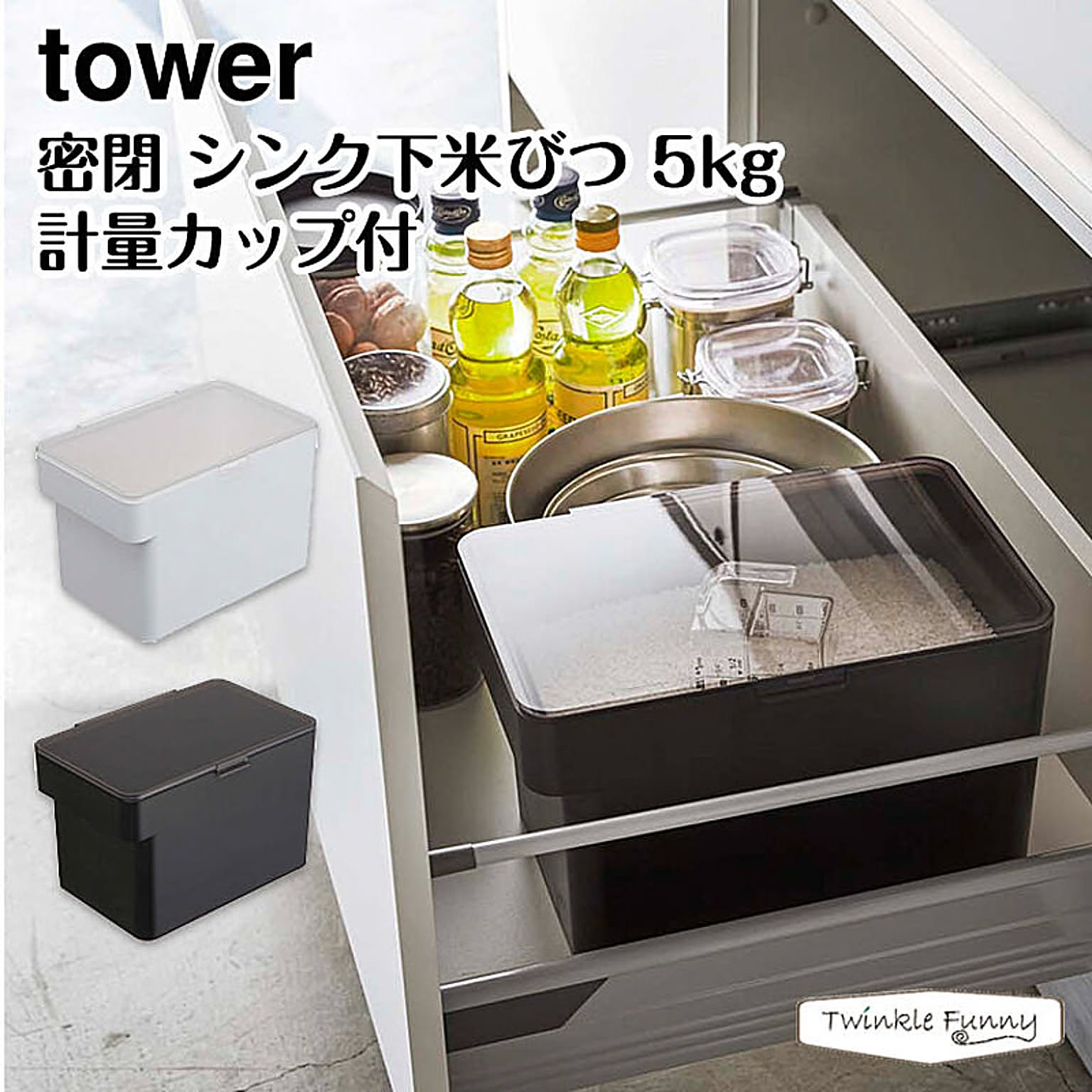 【正規販売店】タワー 密閉 シンク下米びつ 3377 3378 ホワイト ブラック tower 山崎実業 TF-33220