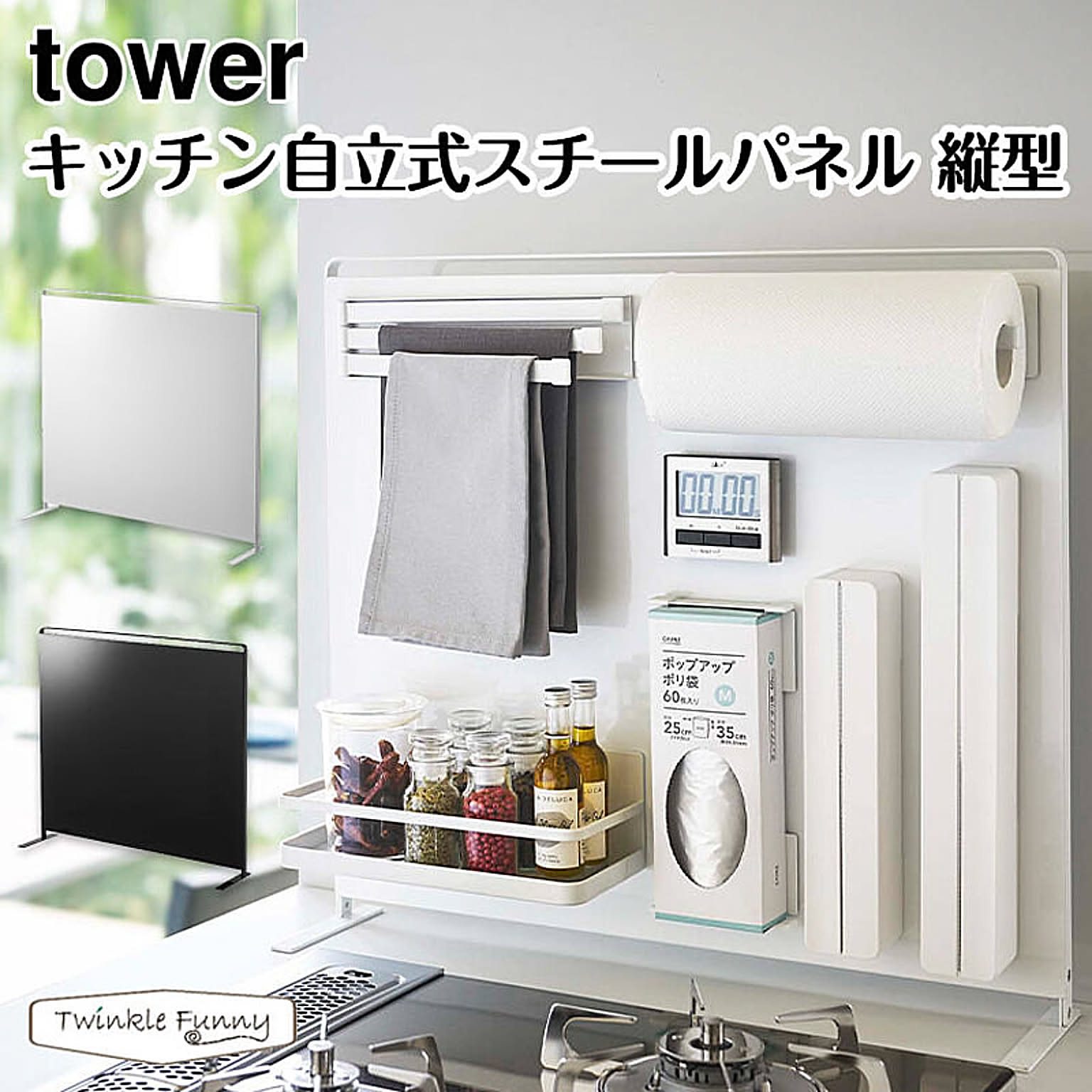 【正規販売店】タワー キッチン自立式スチールパネル 縦型 5124 5125 ホワイト ブラック tower 山崎実業 TF-33232