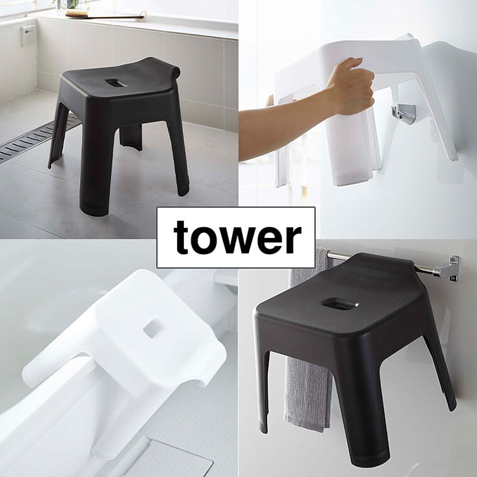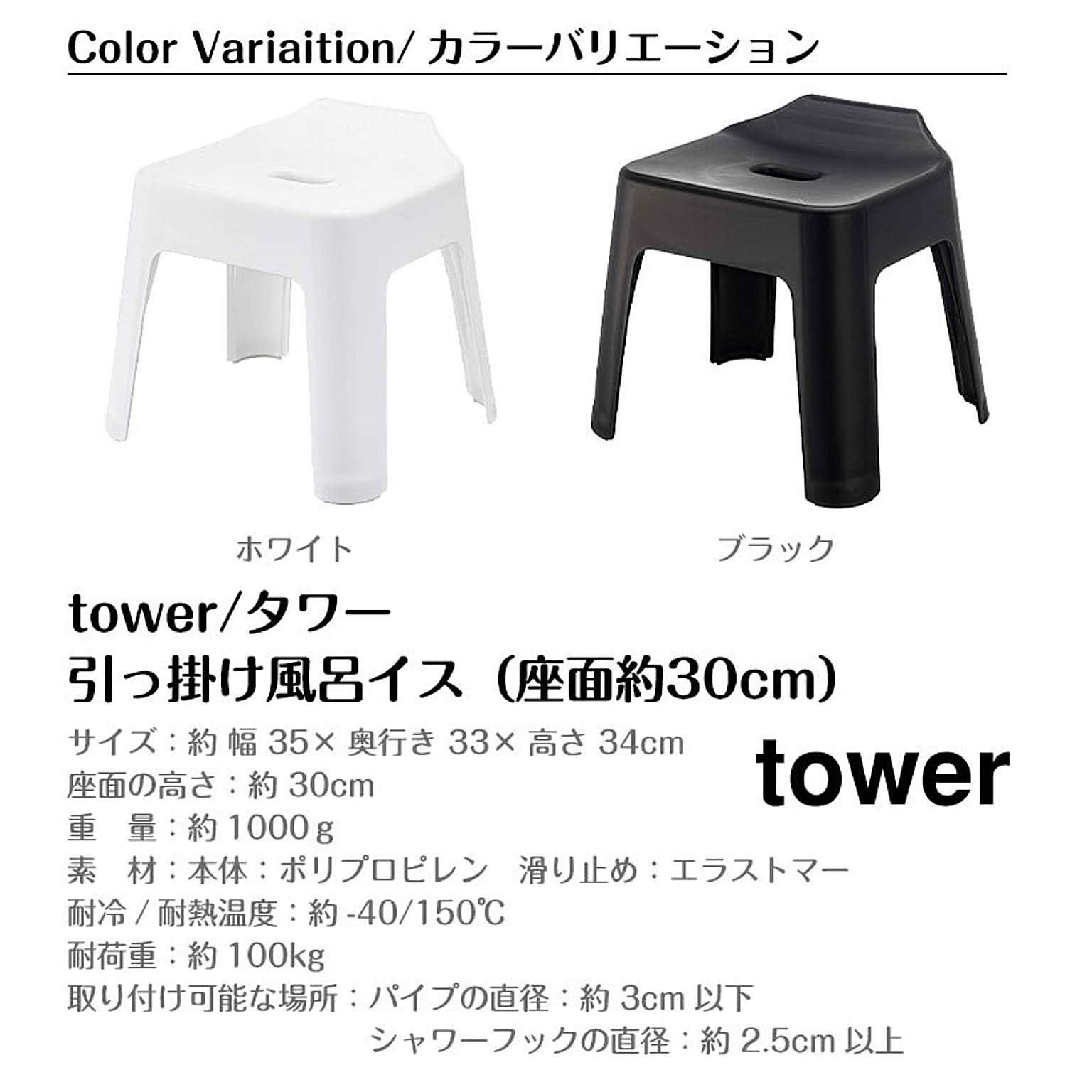 【正規販売店】タワー 引っ掛け風呂イス(座面約30cm) 5526 5527 ホワイト ブラック tower 山崎実業 TF-34056