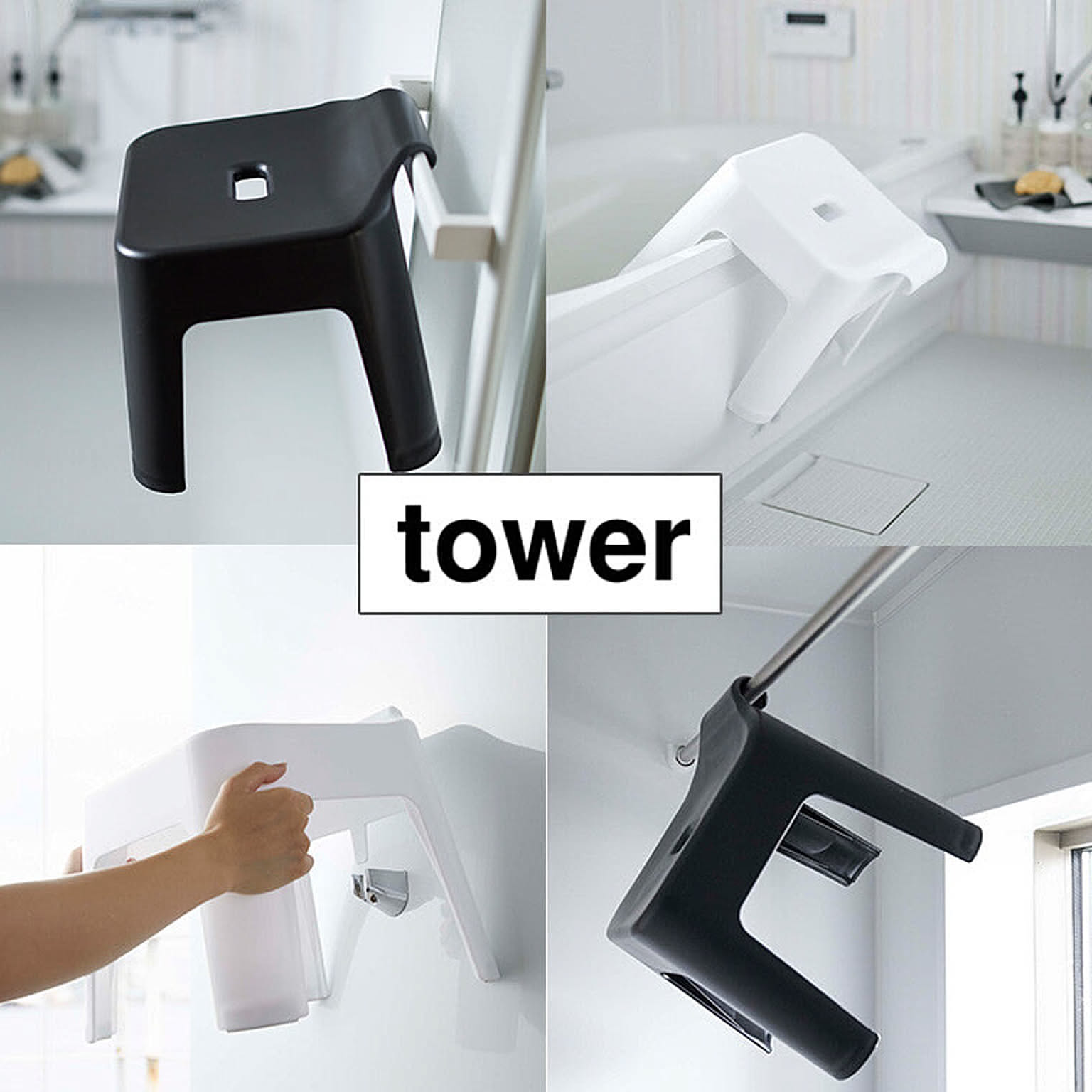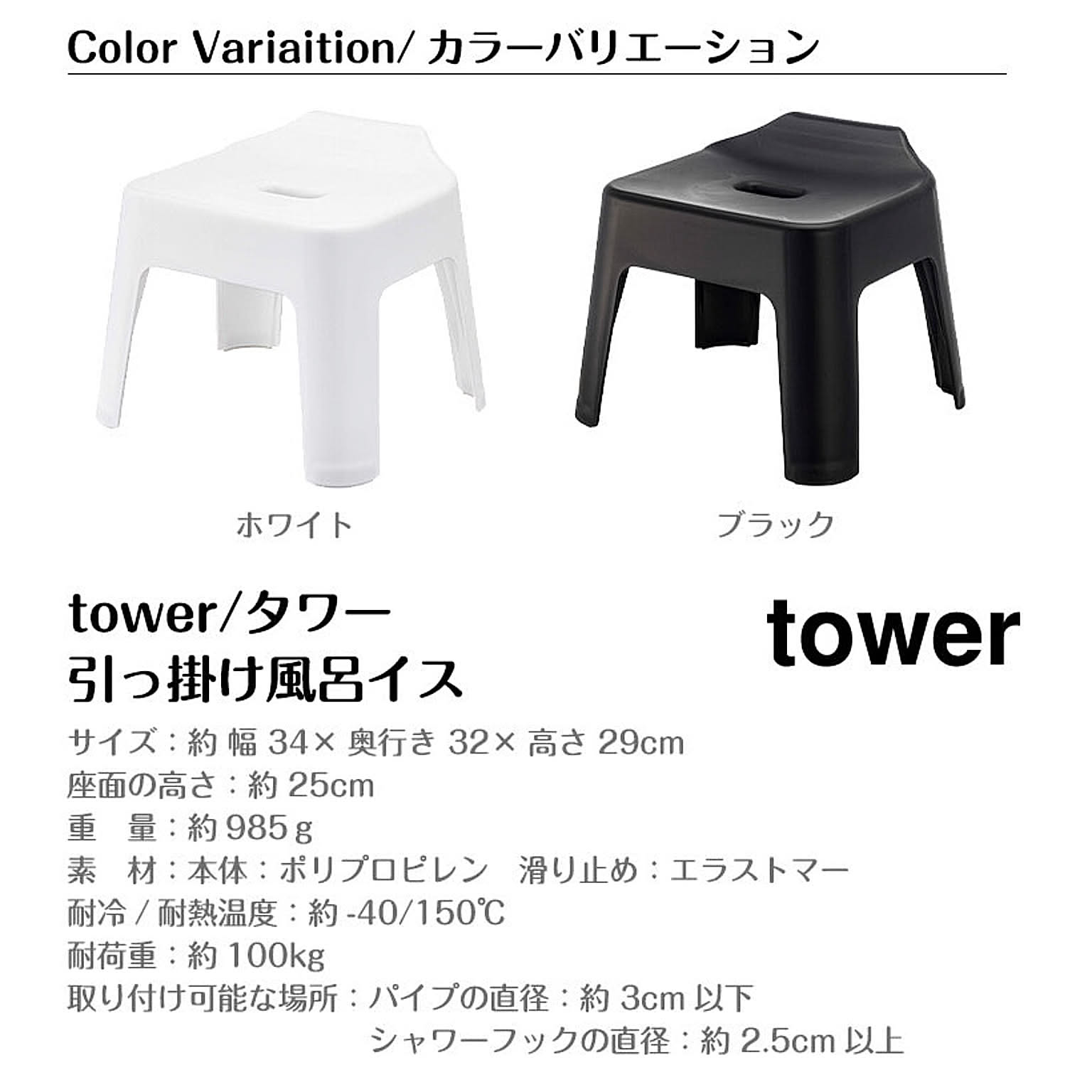 【正規販売店】タワー 引っ掛け風呂イス(座面25cm) 5383 5384 ホワイト ブラック tower 山崎実業 TF-33256