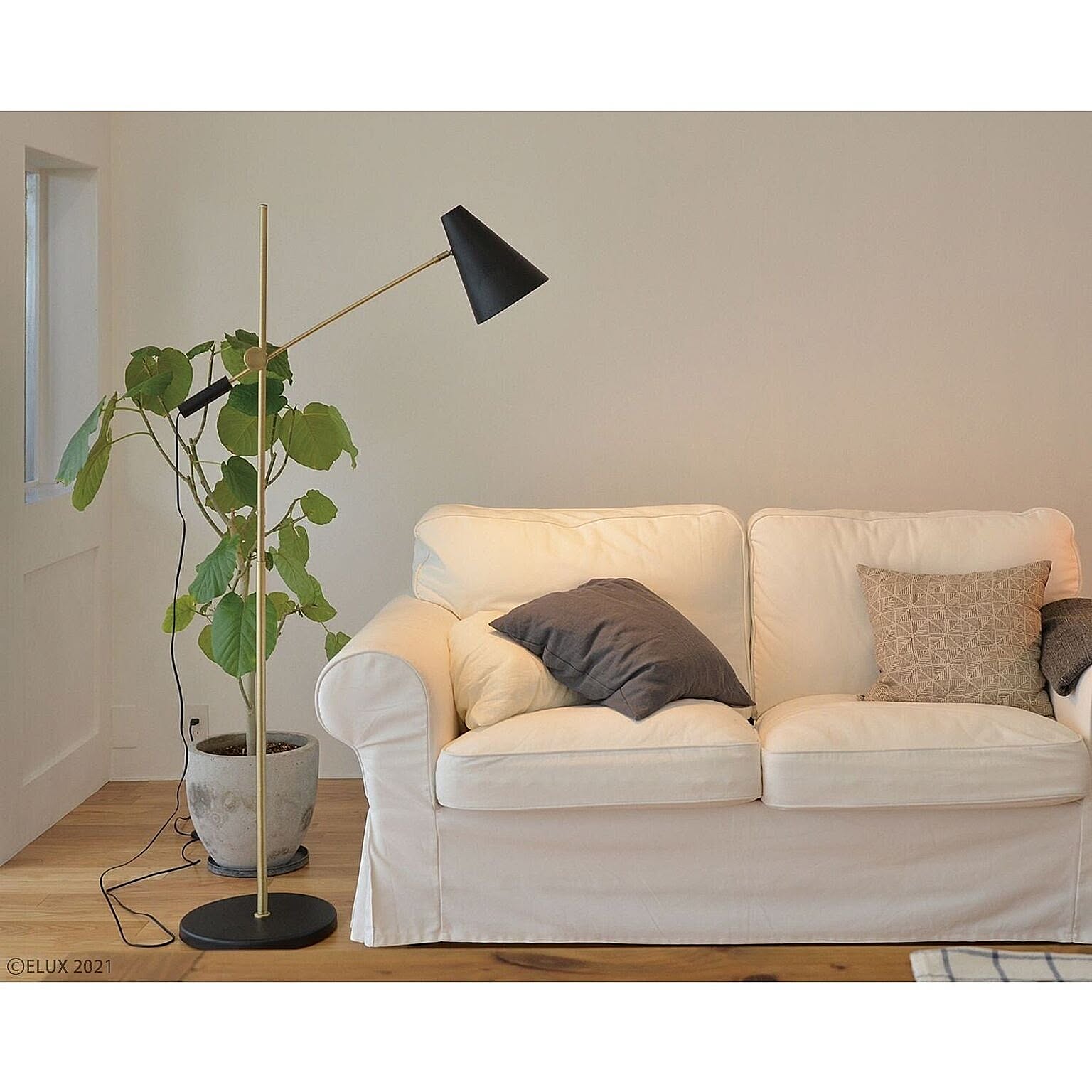 ★メーカー直送品になります。 ●シンプルでモダンなフロアライトです。 ●ブラックとゴールドの組み合わせが高級感を演出しています。 ●シェードに付いているバーと支柱の交差する部分にあるネジを緩めると、高さや角度・向きの調整ができます。 ●手元を照らすだけでなく、間接照明としてもお使いいただけます。 ★メーカー工場直送品になります。