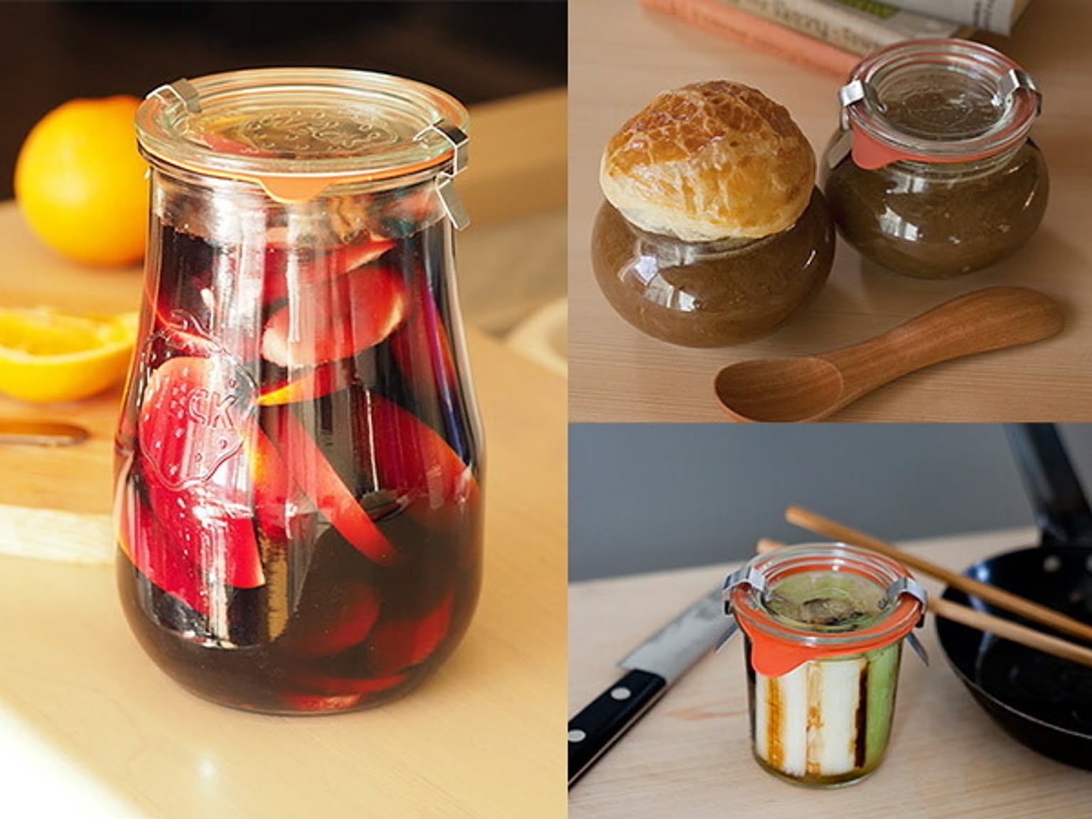 その結果、WECK社は非常にシンプルで安全な密閉法を生み出し、それまでの家庭での瓶詰の常識を一新しました。食品の品質をより高く保ちながら、より簡単に、より安全に保存できるようになったことで、世界中に広まることになり、多くの方々に愛用されています。