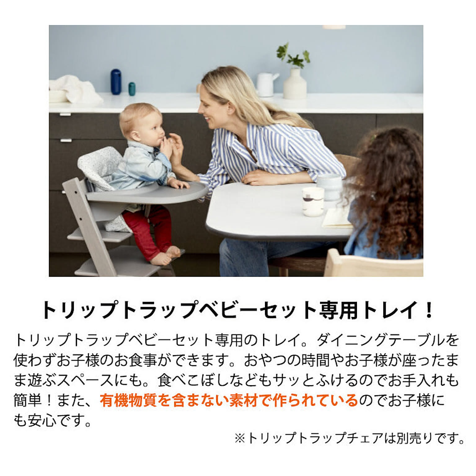 【特徴】トリップトラップ ベビーセット専用アクセサリーのお食事トレイです。