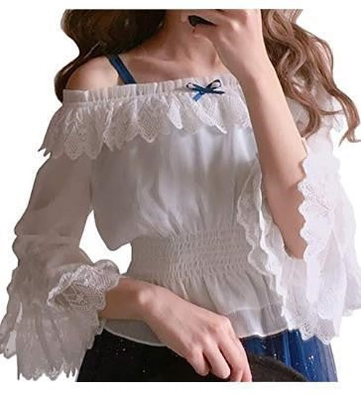ブラウスは、トレンドのフレアスリーブ(バストリボンは取り外し可能 )。