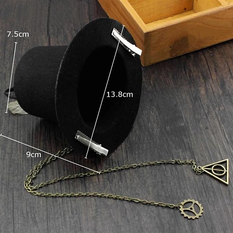 ミニハットにアンティーク風の歯車やコンパスをデコレーション。