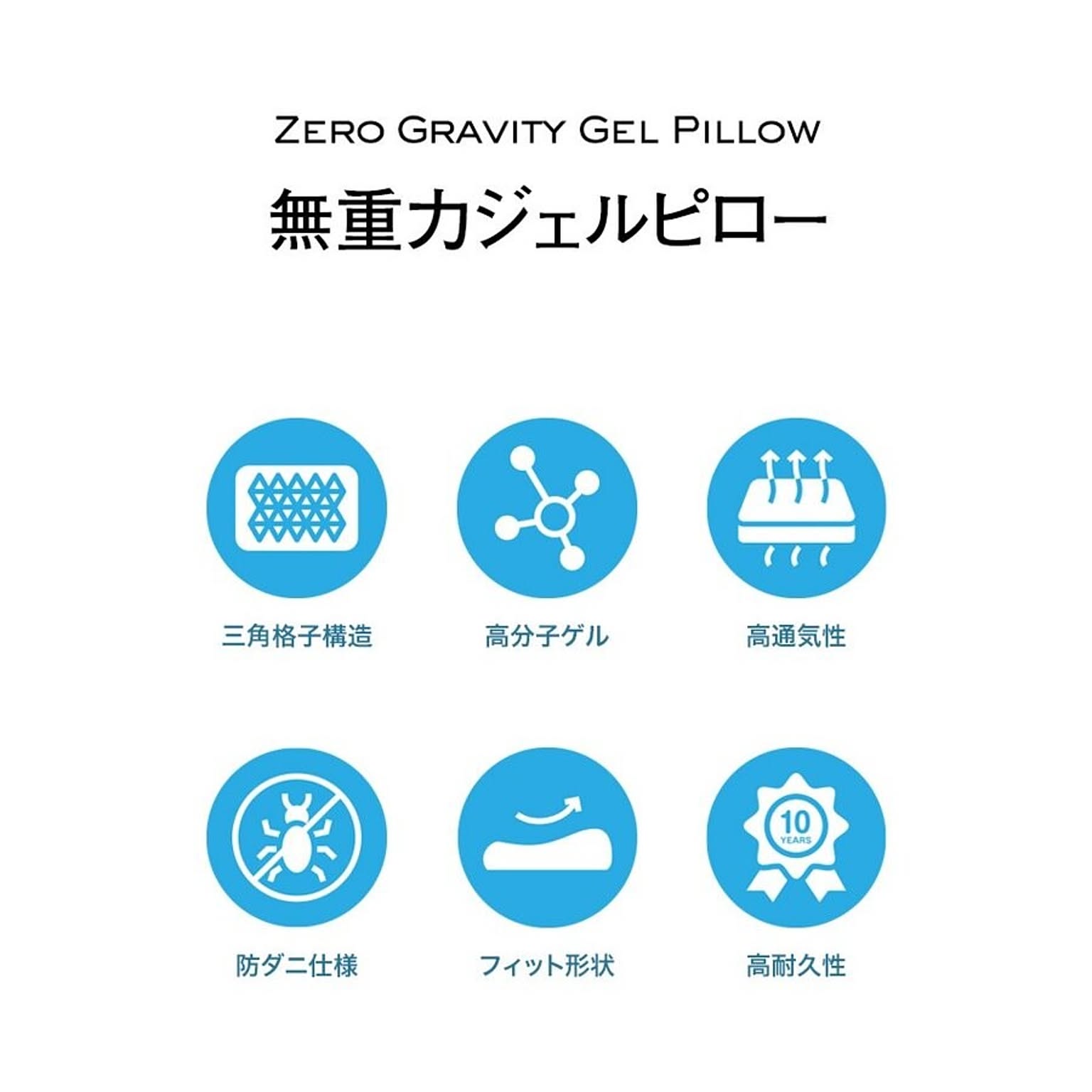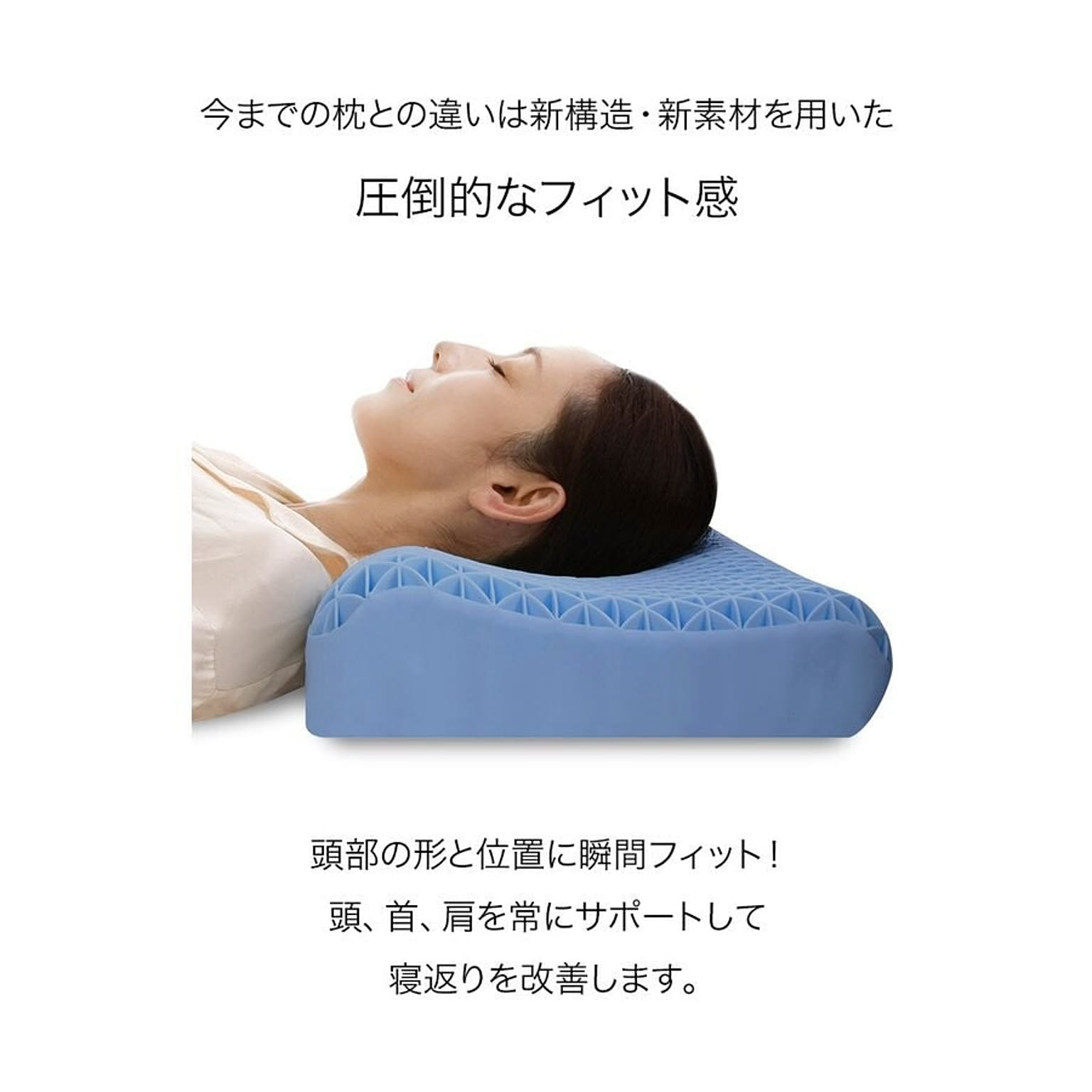 寝心地まるで無重力!首、肩に瞬時にフィットするブルージェル枕 ・卵も割れないクッション性で驚きの寝心地を実現!無重力ジェルピロー。 ・弾力性と粘性を併せ持つ高分子ゲル素材を使用した、ふんわりともっちりとしたジェル枕です。 ・寝返りを打った際、頭部の形と位置に合わせて瞬時にフィットし、首や肩の痛みを解消するサポートをします。 ・通気性に優れ、ムレにくく頭部を快適に保ちます。
