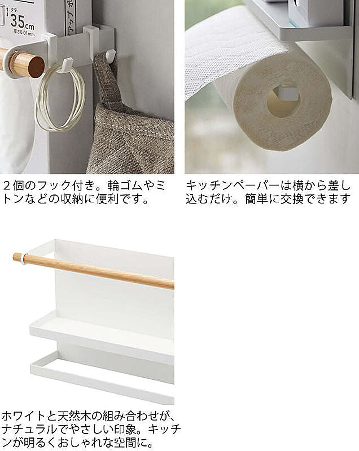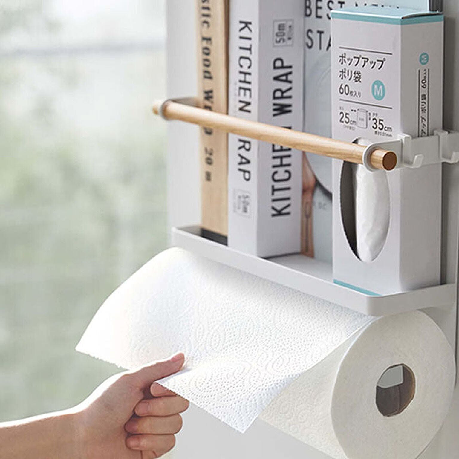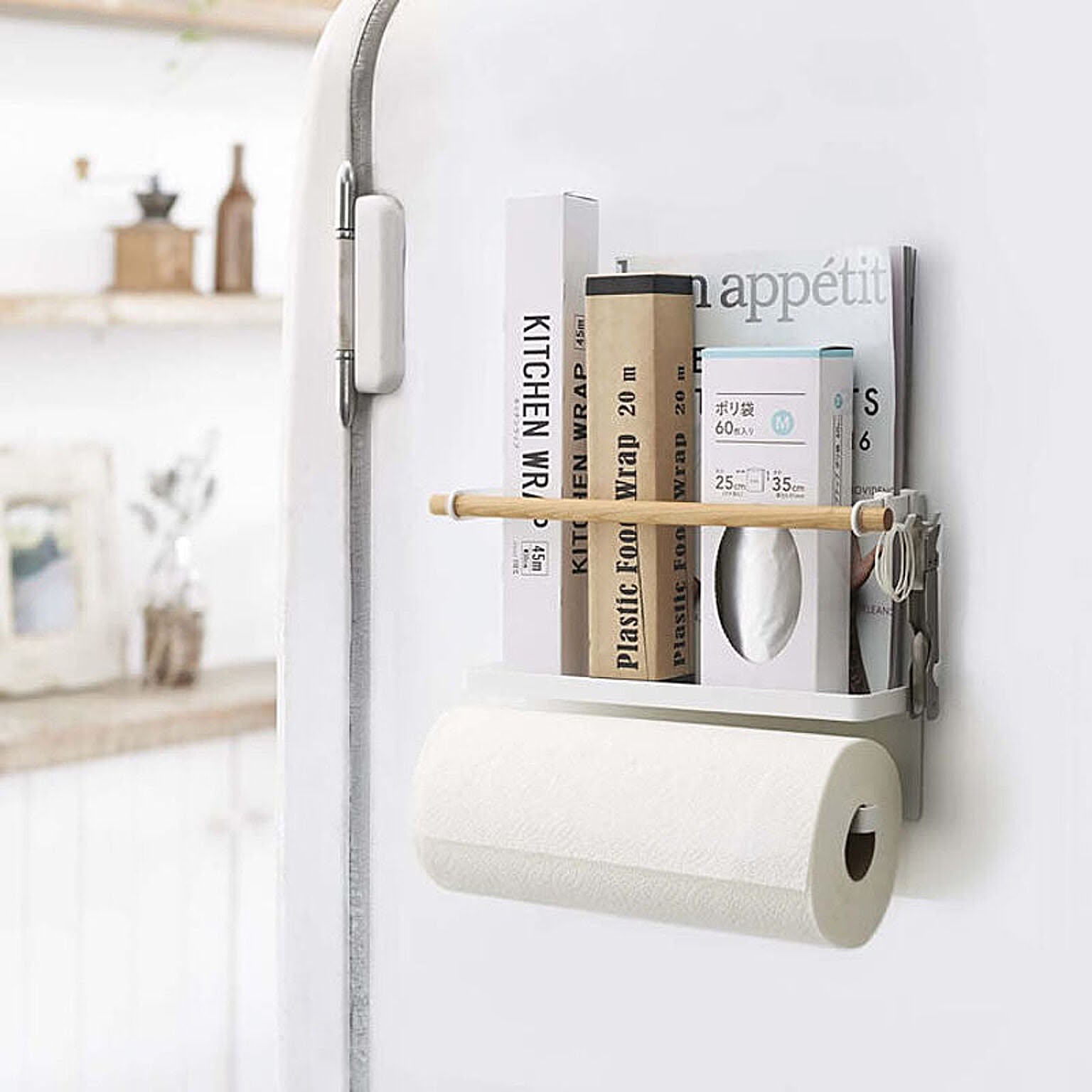 マグネット式で、冷蔵庫に貼り付けるだけで、新たな収納スペースがつくれる優れもの。