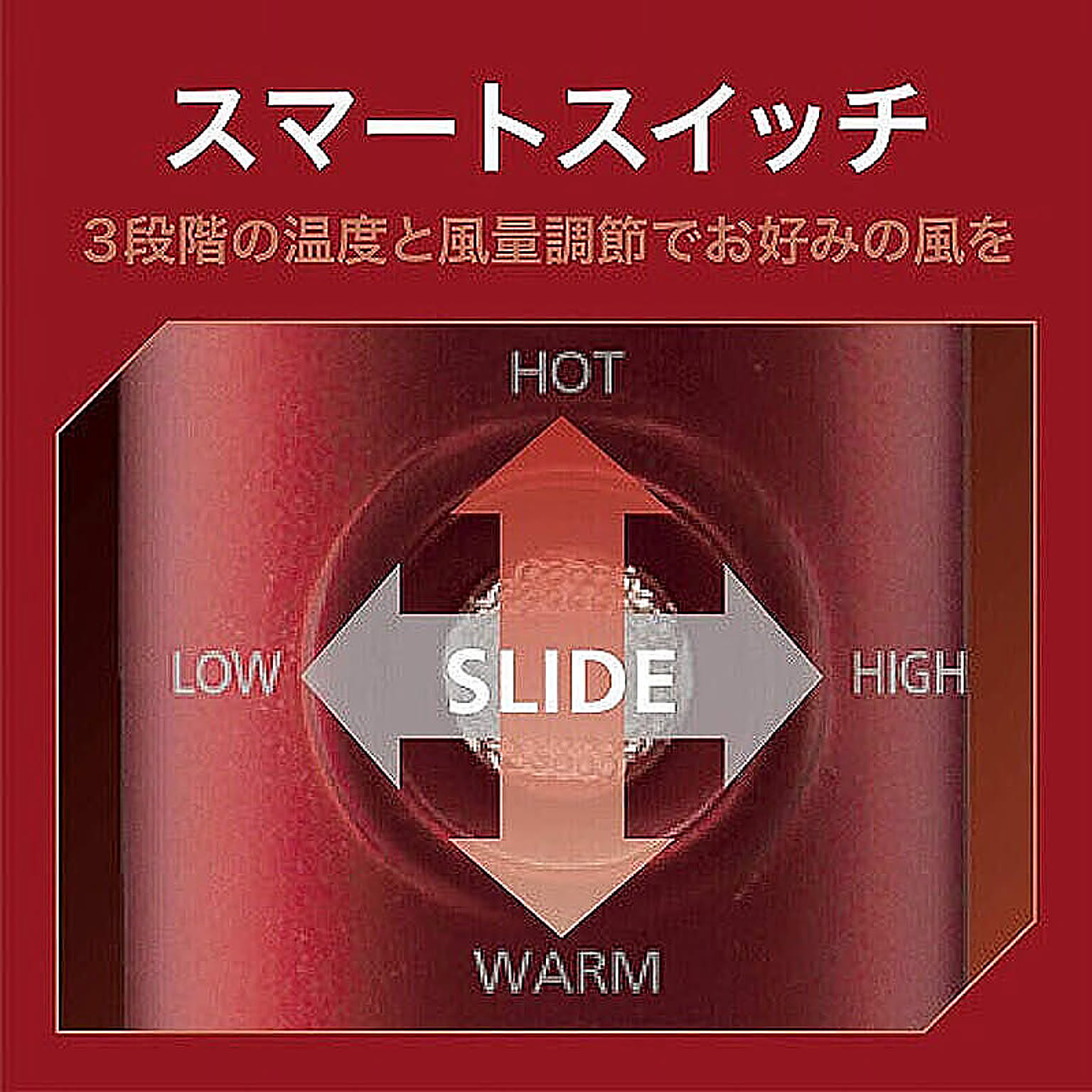 ●スマートスイッチ1つで風量、温度、スカルプモードの切換え可能