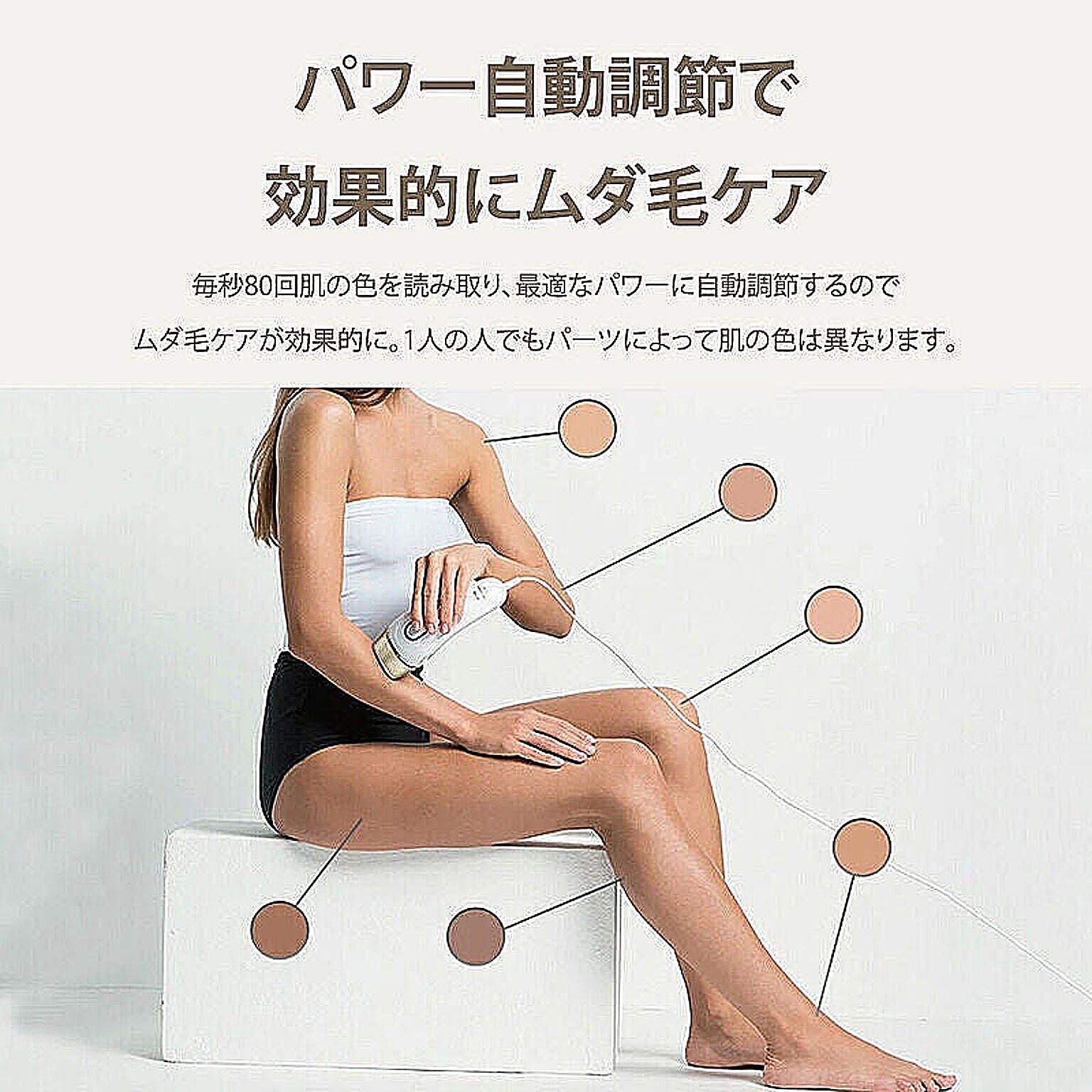 ●パワー自動調節:サロンで肌の色に合わせてパワーを調節するように、ブラウン光美容器は1秒間に80回肌の色を読み込んで、パワーを10段階から自動調節するので、おうちでも安全かつ効果的なムダ毛ケアが可能に。