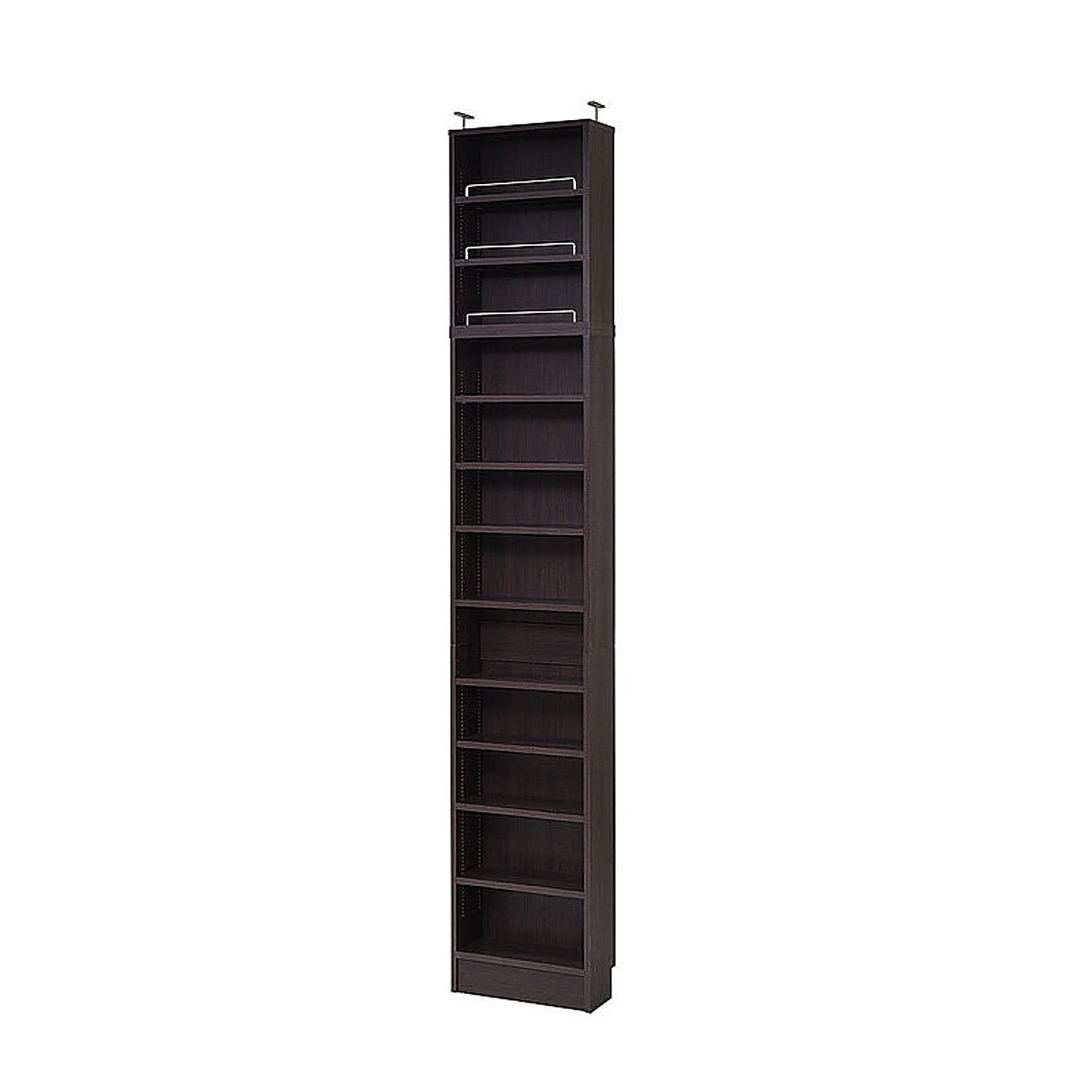 本棚 薄型 天井 つっぱり 奥行 16.5 幅 41.5 高さ238 ~ 253 業界初 棚が全段動く オープンラック 12段 1cm単位 1cmピッチ 棚 調節