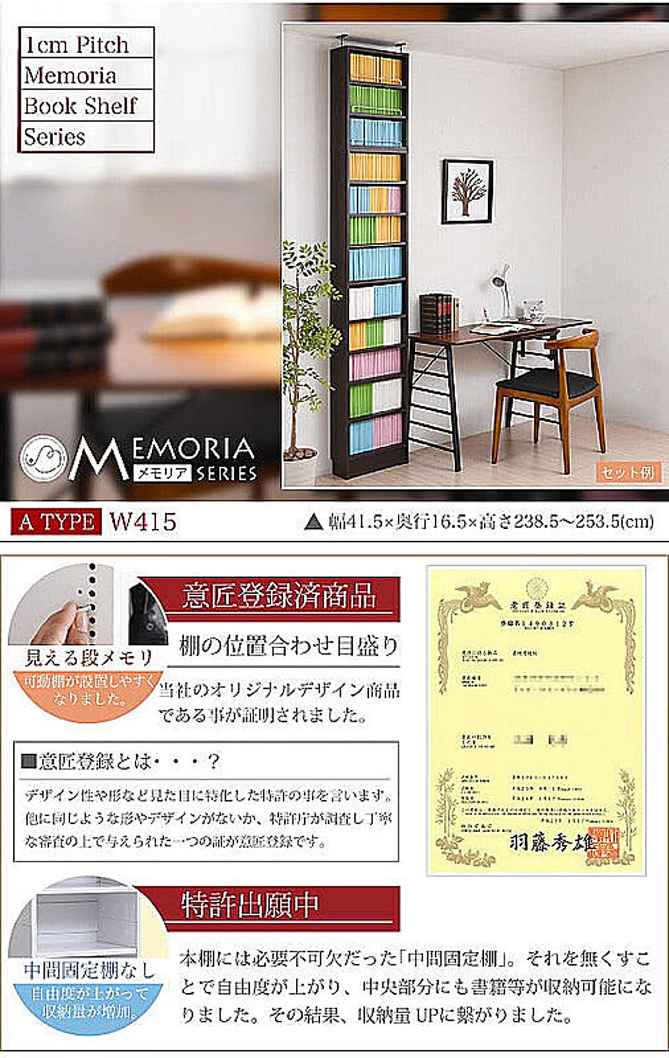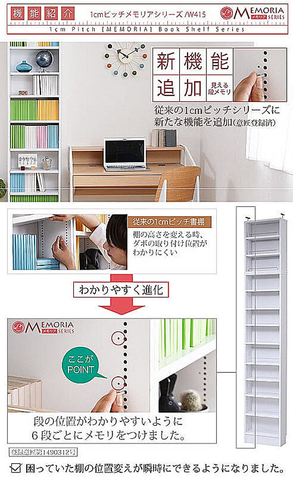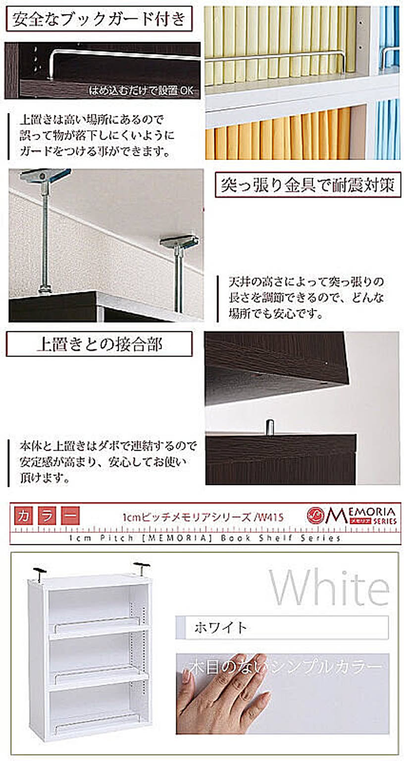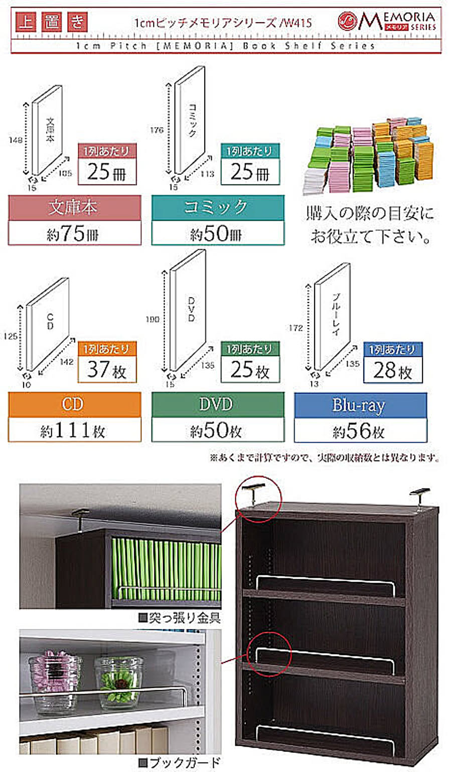本棚 薄型 オープンラック 上置き 幅41.5 MEMORIA 棚板が1cmピッチで可動する